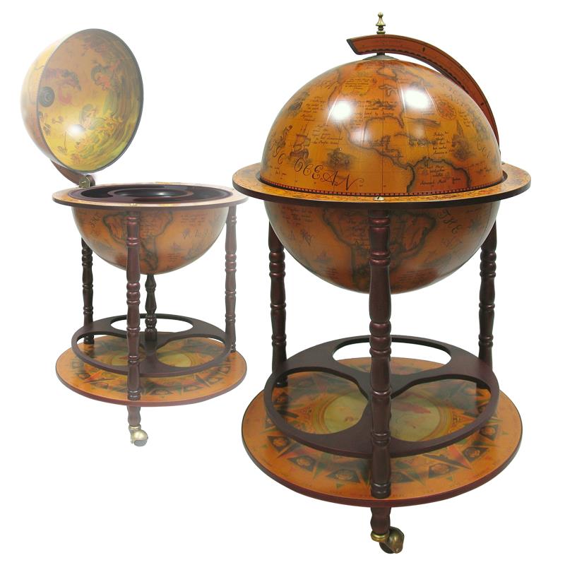 Представьте ситуацию, когда одариваемый решает порадовать своего делового партнера и закадычного друга рюмочкой ароматного коньяка с многолетней выдержкой и при этом достает бутылку из обычной тумбочки, будто вахтер в подсобке — некрасиво, согласитесь? Другое дело — глобус-бар! Процесс потребления алкоголя превращается в целую церемонию, во время которой вкусовые качества напитка только усиливаются. Рассмотрим подробнее, чем же так хорош глобус-бар: