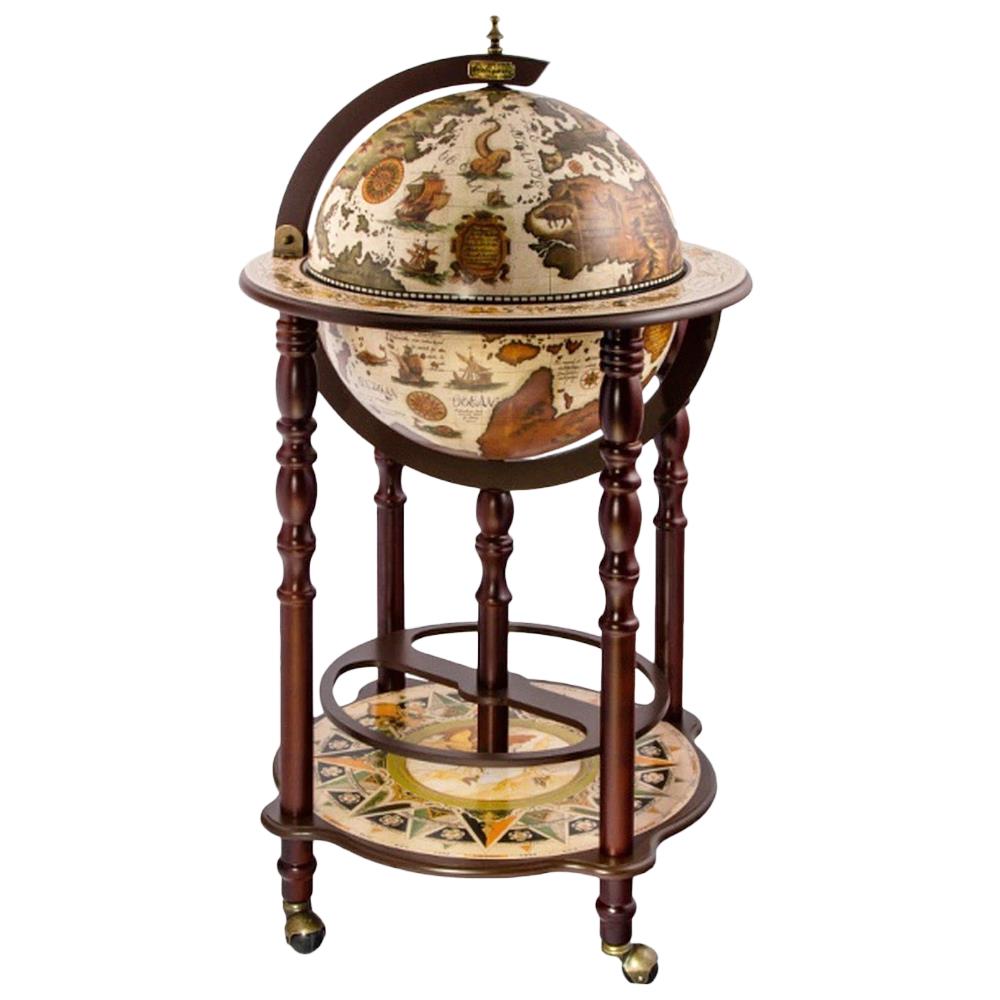При этом немаловажным моментом является декоративное оформление изделия, оно отвечает за общее настроение, за атмосферу которая создается вокруг. Старинная карта, нанесенная на глобус, словно машина времени переместит одариваемого в 16 век. Морские походы путешественников-первооткрывателей стали основой этой карты: были проложены те пути к новым землям, что теперь нам известны. Погружаясь в детальное рассмотрение географических объектов, можно заметить, что не все береговые линии совпадают с современной картой мира. Длинными вечерами виновнику торжества будет чем занять себя и тех, кто разделит с ним приятные минуты нахождения рядом с глобусом-баром.