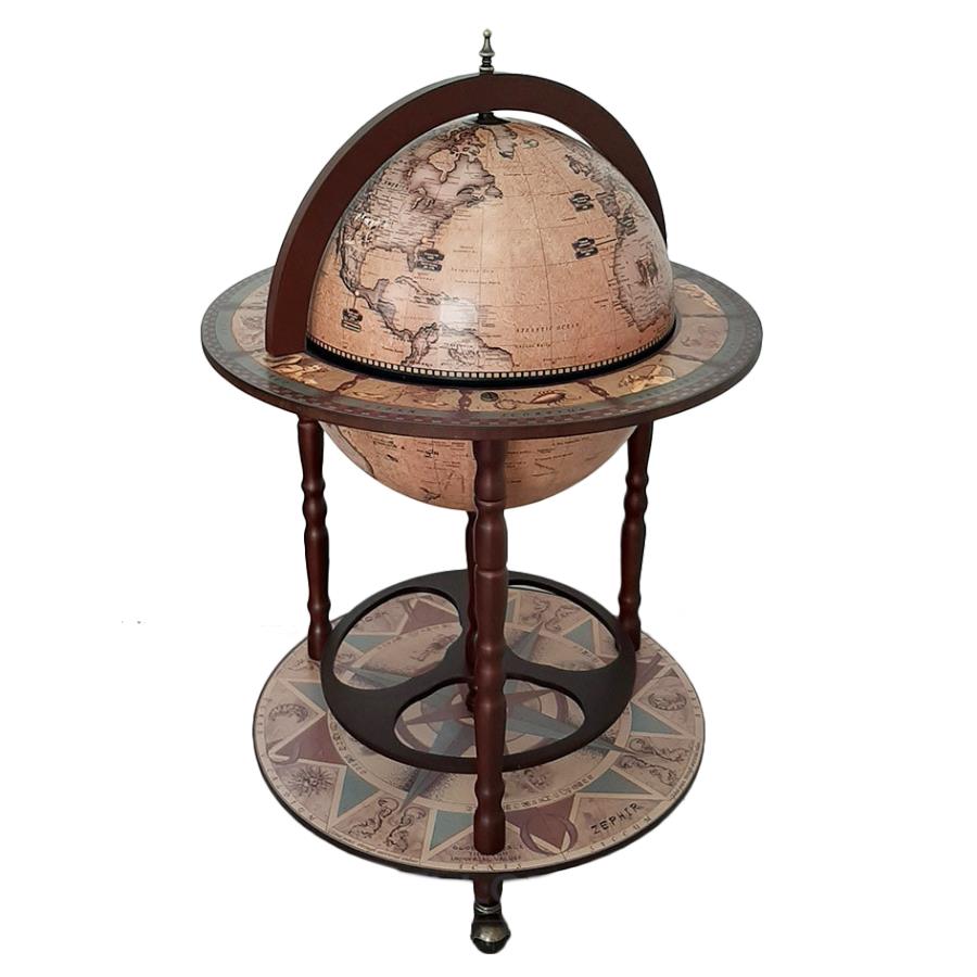Если вам когда-то доводилось бывать в антикварных салонах, рассматривать и любоваться потрясающими предметами старины, то вы знаете, какое впечатление, какие восторженные эмоции будет получать одариваемый каждый раз, глядя на ваш презент. Глобус-бар украшает современная карта мира в винтажном стиле. Она исполнена в благородных бежевых оттенках, напоминает собой те старинные карты, которые нам доводилось видеть в приключенческих фильмах про поиски сокровищ.