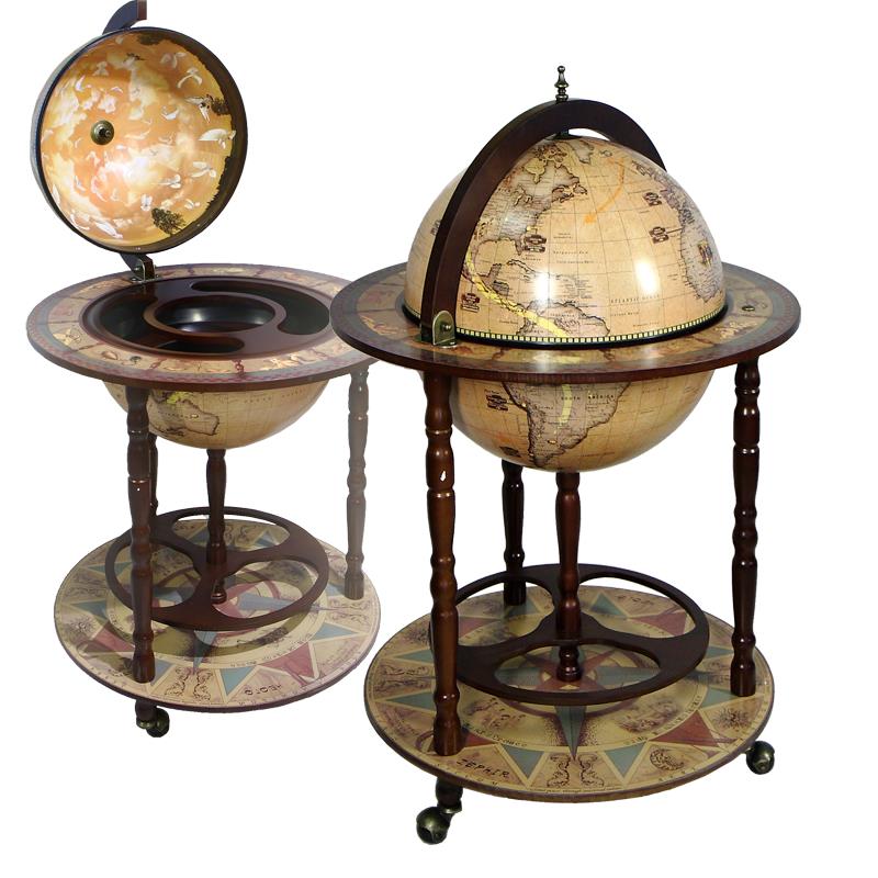 Представьте ситуацию, когда одариваемый решает порадовать своего делового партнера и закадычного друга рюмочкой ароматного коньяка с многолетней выдержкой и при этом достает бутылку из обычной тумбочки, будто вахтер в подсобке — некрасиво, согласитесь? Другое дело — глобус-бар! Процесс потребления алкоголя превращается в целую церемонию, во время которой вкусовые качества напитка только усиливаются. Рассмотрим подробнее, чем же так хорош глобус-бар: