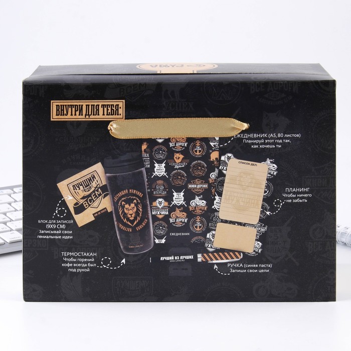 | Составляющие набора | Планинг, Термостакан, Бумажный блок, Ручка, Ежедневник |