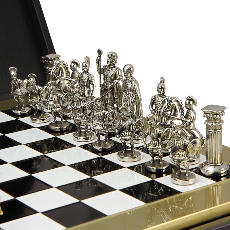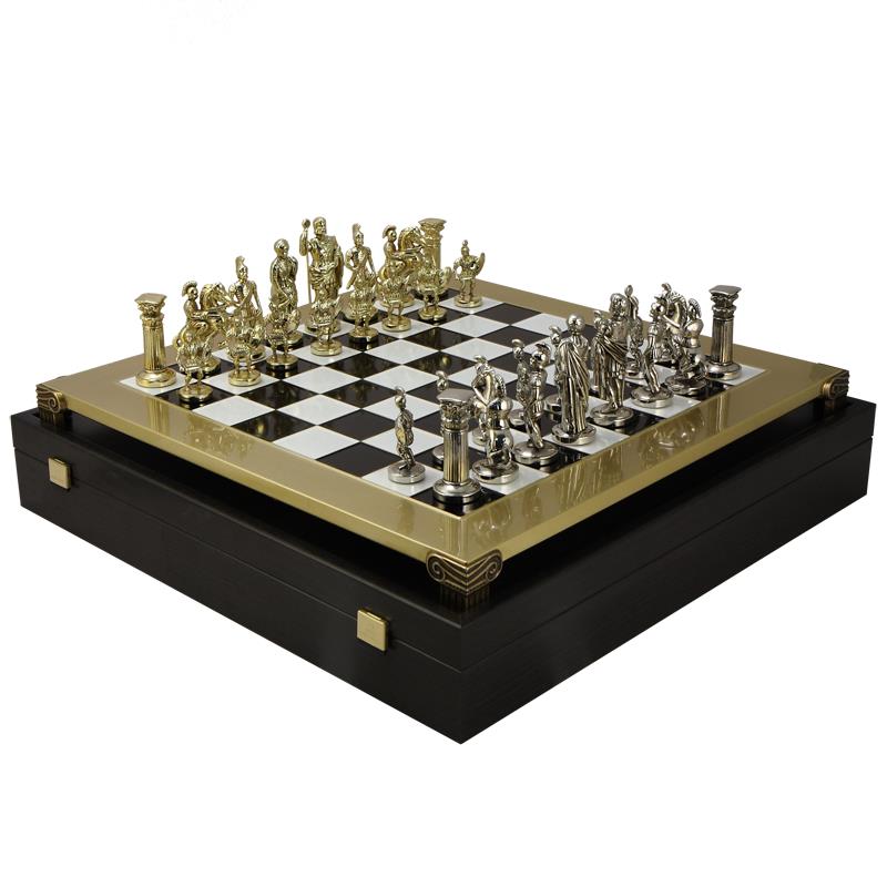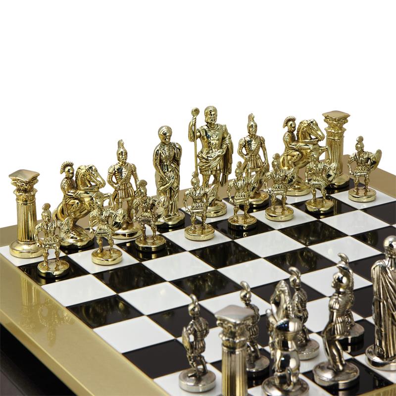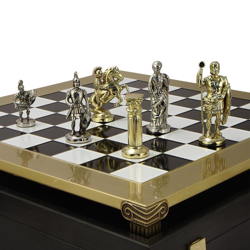 Время идет, и в современном мире каждый может себе позволить развиваться, совершенствоваться и играть в шахматы. Есть возможность приобрести шахматный набор на любой вкус, выбор огромен. Однако, как и раньше, существует определенная категория одариваемых — представители элиты, чиновники, бизнесмены, люди с высоким уровнем достатка, которые хотят провести не просто интересную шахматную игру, а получить эстетическое удовольствие от процесса. В этом случае важно, чтобы атрибуты игры стали еще и украшением интерьера рабочего кабинета, гостиной. Поскольку одариваемый относится именно к числу истеблишмента, бомонда, интернет-магазин «Подарки от Михалыча» нашел потрясающий вариант подношения: подарочные шахматы «Римский легион».