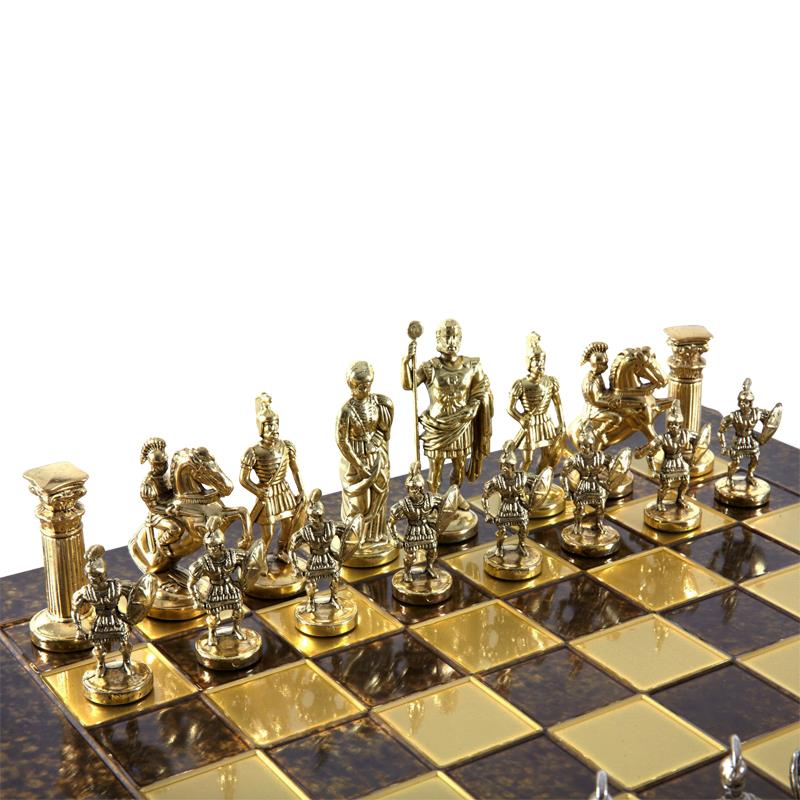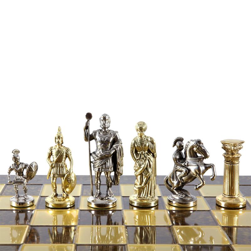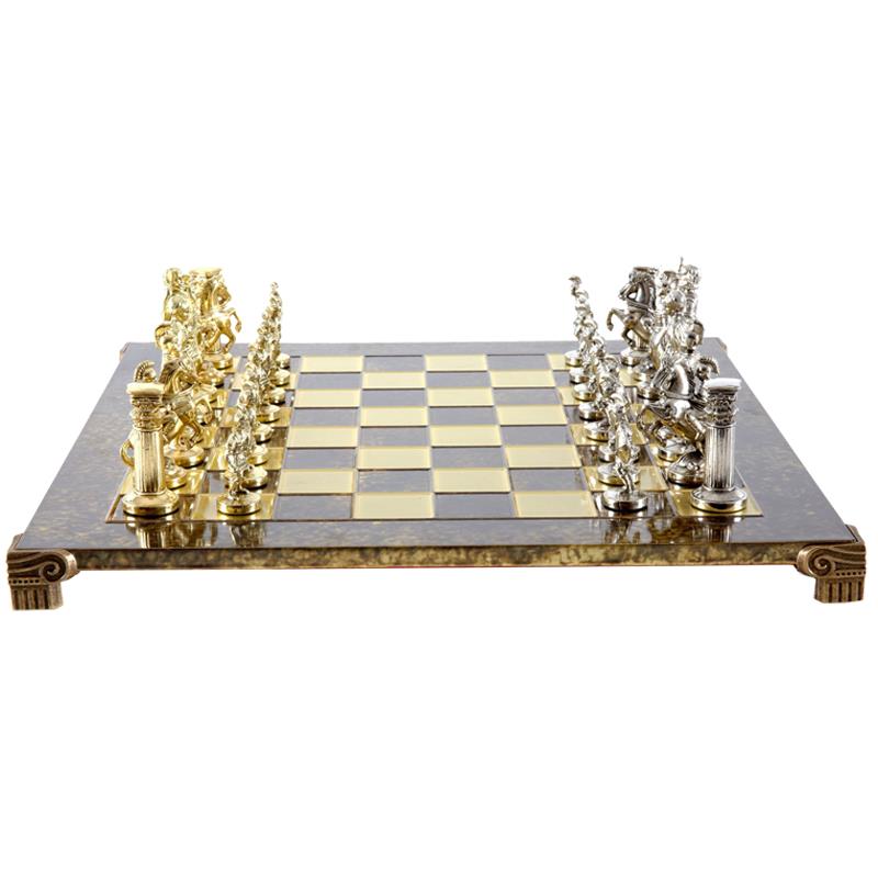 История — это то, что объединяет поколения, поэтому рекомендованный набор обязательно станет семейной реликвией для одариваемого. Шахматные фигуры из представленного комплекта сделаны в виде героев, прибывших из Древней Греции. Они считали себя эллинами, а всю страну называли Элладой. Поражает точность исполнения и внимание к деталям. Можно рассмотреть мельчайшие элементы фигур, например, доспехи, оружие воинов, складки на женском платье. Статуэтки изготовлены из особенного сплава «замак». Он знаком ювелирам, которые часто его применяют в своем деле. Сплав состоит из цинка, алюминия, меди, не содержит вредных для здоровья человека примесей и отличается высокой прочностью. Сверху фигуры покрыты латунью и до блеска отполированы мастером вручную. Серебряный и золотой цвет делает их максимально похожими на ювелирные изделия.