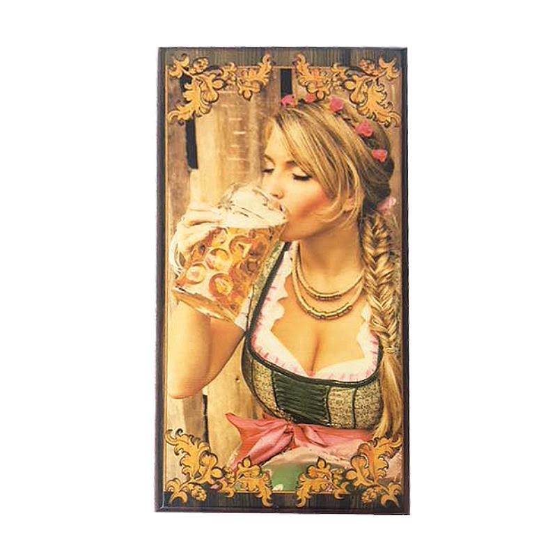 Представленный презент изготовлен из натурального дерева отечественной компанией «Перфекто». Большое внимание производитель уделил качеству изделия. Набор представляет собой 2 в 1 и предназначен для игры в шашки и нарды. Экологически чистый материал не вызовет аллергии у одариваемого, а благодаря прочным петлям и крючкам, которыми оснащена доска, ваш презент прослужит много дет. В состав игрового комплекта входят фишки, шашки и 2 игральные кости. Все располагается внутри складной доски. Поверхность доски украшена ярким дизайном. С помощью шелкографии удалось изобразить симпатичную девушку, которая с удовольствием пьет пенный напиток. За кружечкой пива можно сыграть несколько партий в шашки или нарды и насладиться игрой в полной мере. Общий вес набора составляет 1,1 кг.