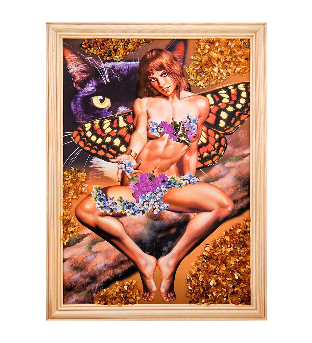 Картина Девушка- бабочка (янтарная крошка)