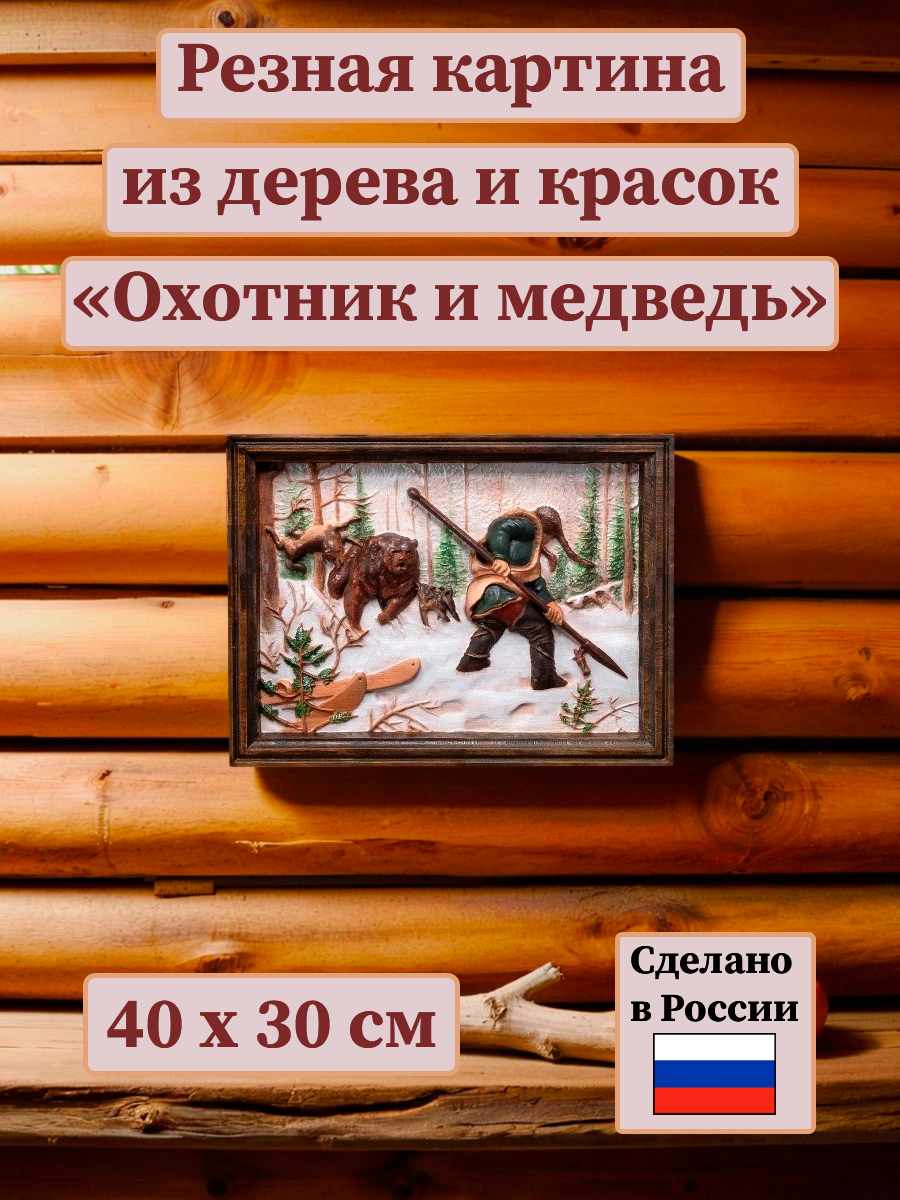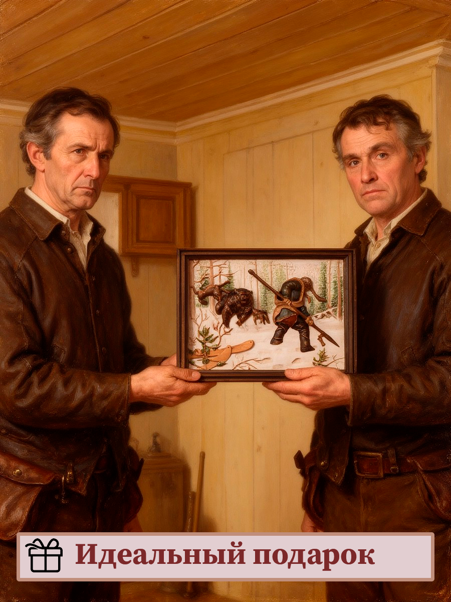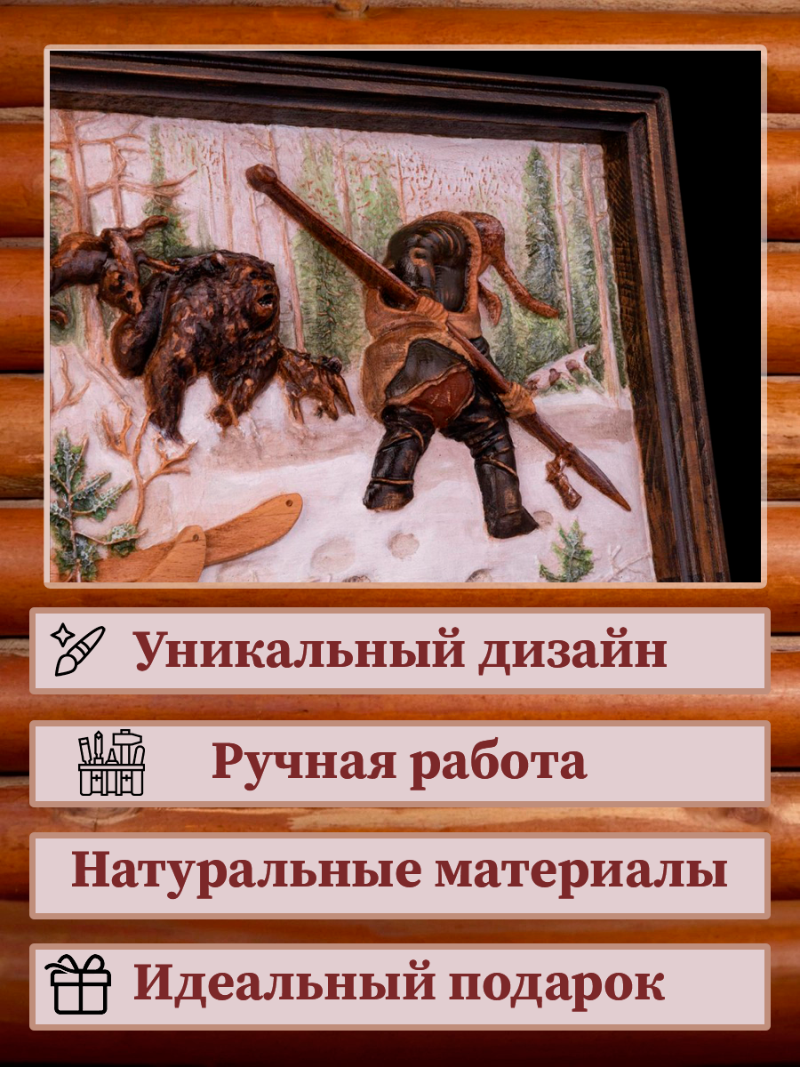 Картина «Охотник и медведь» (резная)