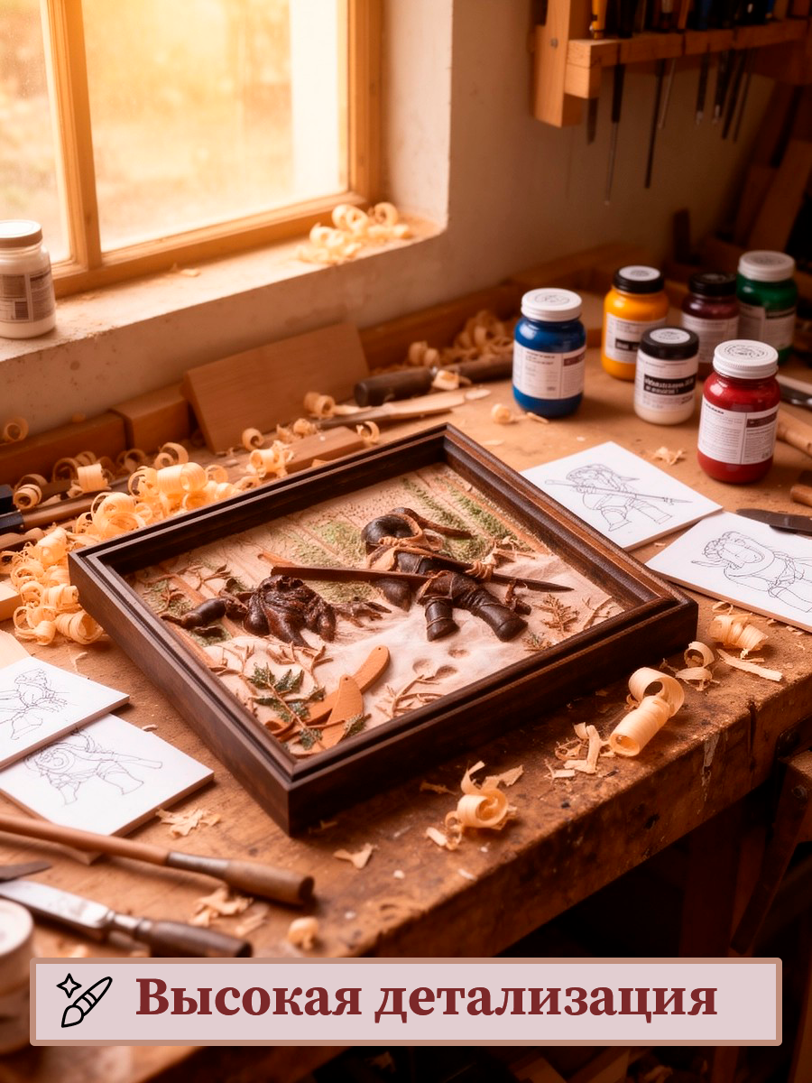 Картина Охотник и медведь (резная)