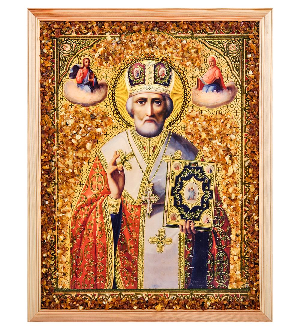 Икона Николай Чудотворец (янтарная крошка)