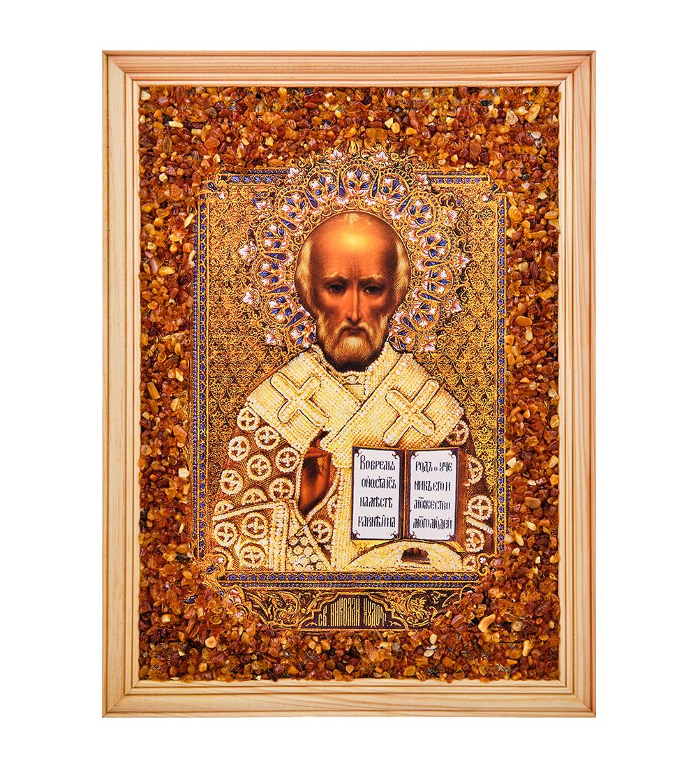 Икона Святой Николай Чудотворец (янтарная крошка)