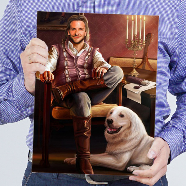 Портрет по фото «Барин» отличается высоким качеством, четкостью изображения и сочной цветовой гаммой. Подобный фотоколлаж создается на основе снимков, предоставляемых заказчиком. Лицо запечатленного на них героя накладывается на заранее выбранный исторический, романтический или забавный сюжет.