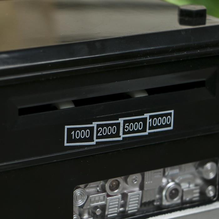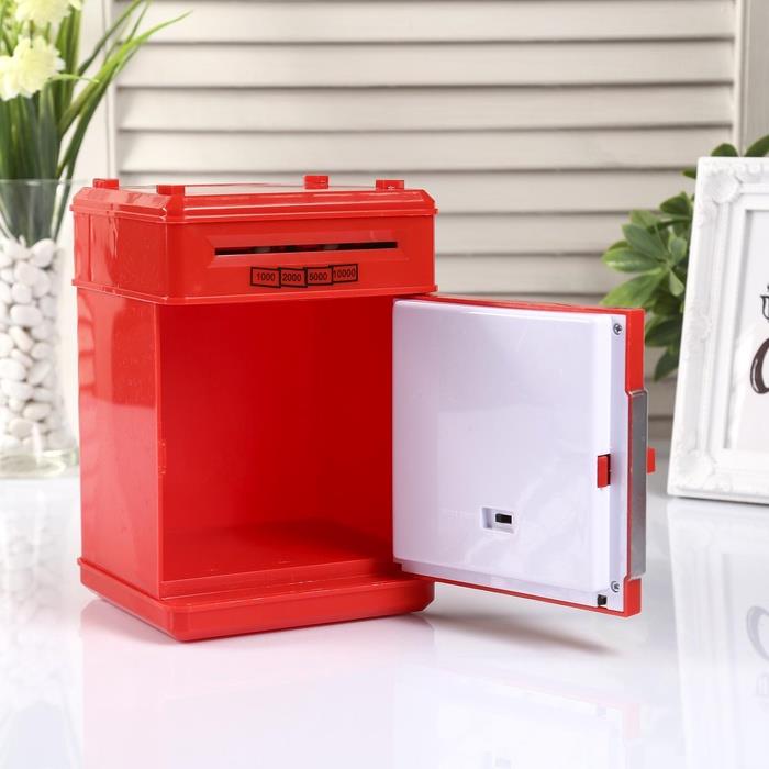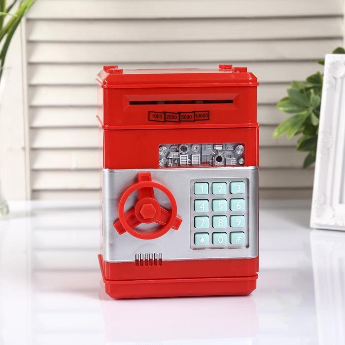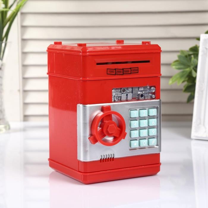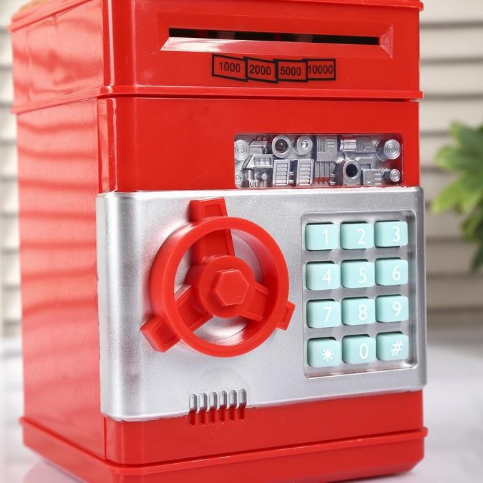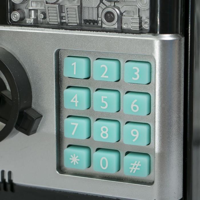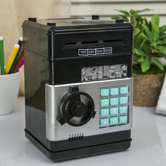 | Особенности | - звуковой эффект; - кодовый замок; - купюроприемник; - работает от трех батареек типа АА. |