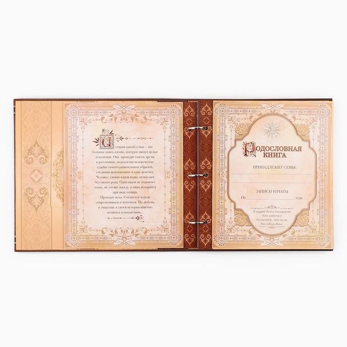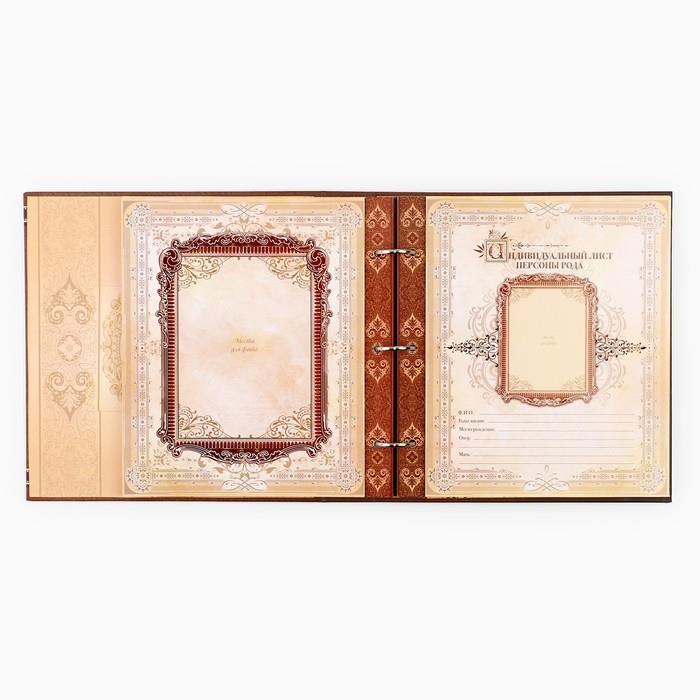 | Комплектация | - обложка с кольцевым механизмом; - руководство по заполнению; - индивидуальные листы; - послание потомкам; Тематические разделители: - «Род отца»; - «Род матери»; - «Род жены (мужа)»; - «Словарь терминов родства»; - «Происхождение фамилии»; - «Таланты нашего рода»; - «Семейные предания и воспоминания»; - «Награды и отличия рода»; - «Семейные и кулинарные рецепты»; - «История родного края»; - лист генеалогического древа; - 2 листа наклеек; - фоторамка. |