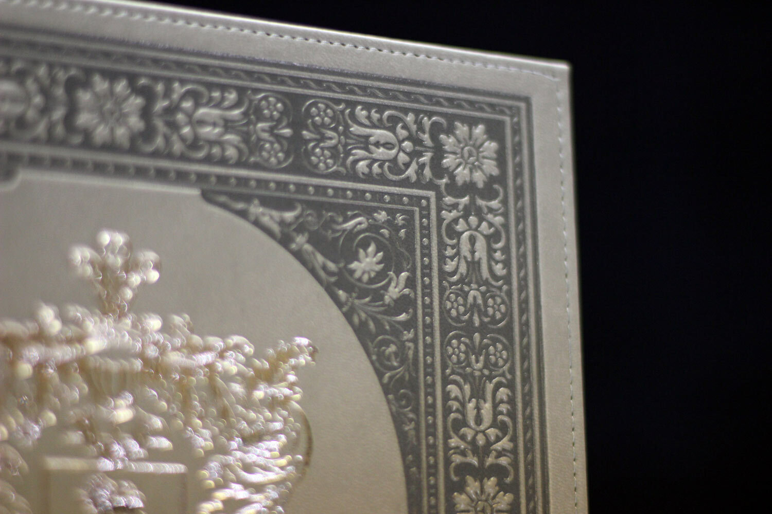 Обложка книги выполнена в глубоком сером цвете, который подчеркивается разными видами тиснений, в том числе и “серебряным”. Именно с его помощью украшена центральная часть со стилизованным дворянским гербом. Дворянский герб символизирует знатное происхождение, особое положение в обществе, что обязательно придется по душе одариваемому. Фолиант займет самое главное место на книжной полке или вовсе окажется в окружении предметов старины и будет соседствовать с дорогими антикварными предметами. Поверьте, ваш презент найдет самое достойное место.