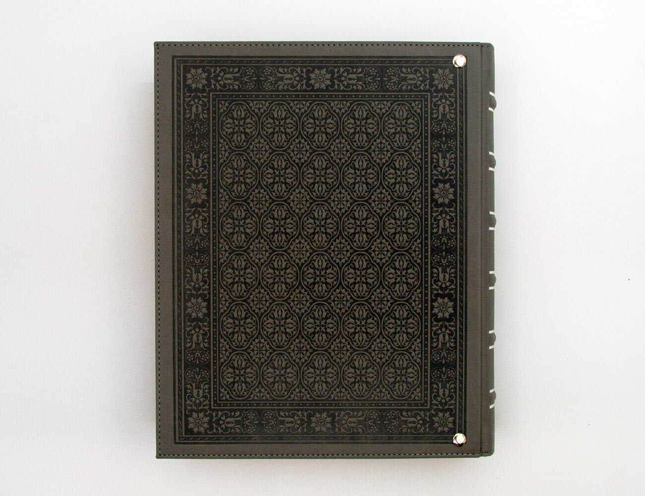 информация о родословной одариваемого будет храниться на 108 листах, скрепленных D-образным кольцевым механизмом и предназначенных для самостоятельного заполнения. Благодаря удобному механизму листы можно менять местами или вовсе убрать из книги;