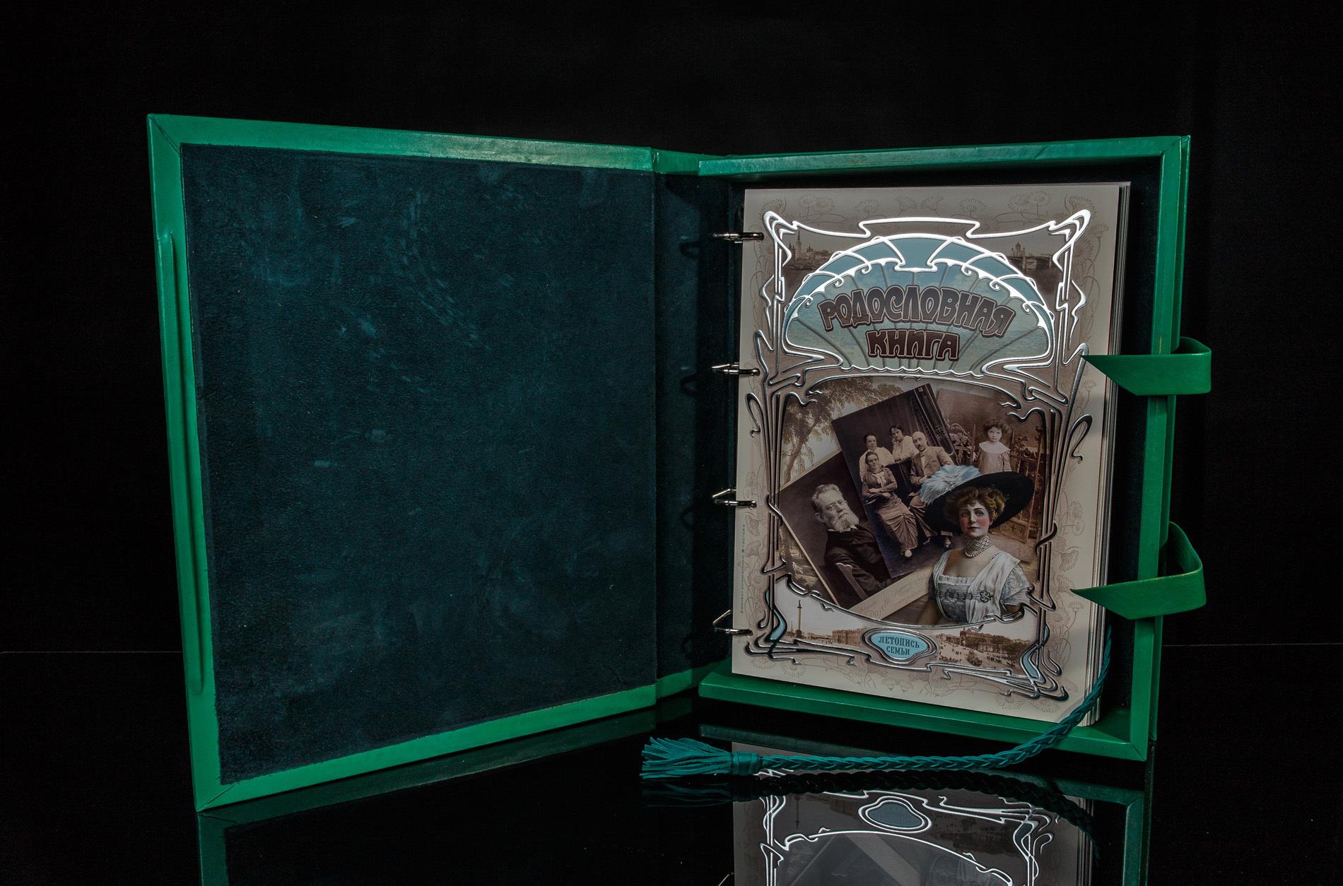 | Комплектация | - футляр из натуральной кожи; - обложка с кольцевым механизмом; - внутренний художественный блок для заполнения; - брошюра с описанием структуры заполнения родословной книги; - компакт-диск с файлами для печати дополнительных персональных листов книги; - подарочный сертификат на бесплатное оформление родословного древа. |