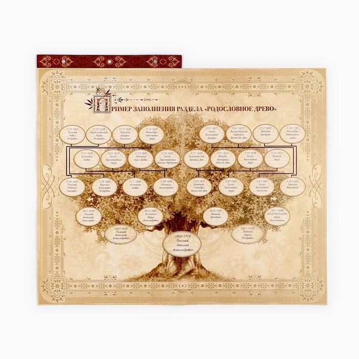 | Комплектация | - обложка с кольцевым механизмом; - руководство по заполнению; - индивидуальные листы; - календарь семейных дат; - послание потомкам; Тематические разделители: - «Род отца»; - «Род матери»; - «Род жены (мужа)»; - «Словарь терминов родства»; - «Происхождение фамилии»; - «Таланты нашего рода»; - «Семейные предания и воспоминания»; - «Награды и отличия рода»; - «Семейные и кулинарные рецепты»; - «История родного края»; - лист генеалогического древа; - 2 листа наклеек; - фоторамка. |