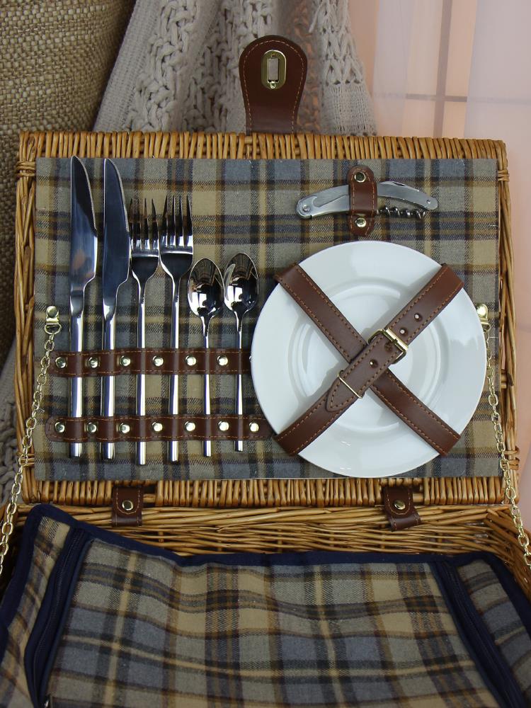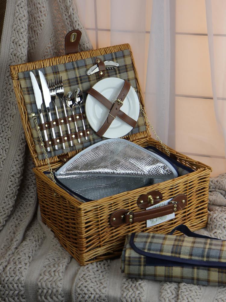 | Комплектация | - две тарелки по 18 см; - два набора столовых приборов из нержавеющей стали; - два ножа; - две вилки; - две ложки; - штопор (3 в 1) из нержавеющей стали; - съемная термосумка; - плед 145 х 145 см; - бокалы в комплект не входят! |