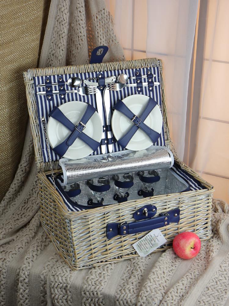 | Комплектация | - четыре керамических тарелки по 18 см; - четыре стеклянных бокала на 120 мл; - четыре набора столовых приборов из нержавеющей стали; - четыре ножа; - четыре вилки; - четыре ложки; - штопор (3 в 1) из нержавеющей стали; - несъемная термосумка. |