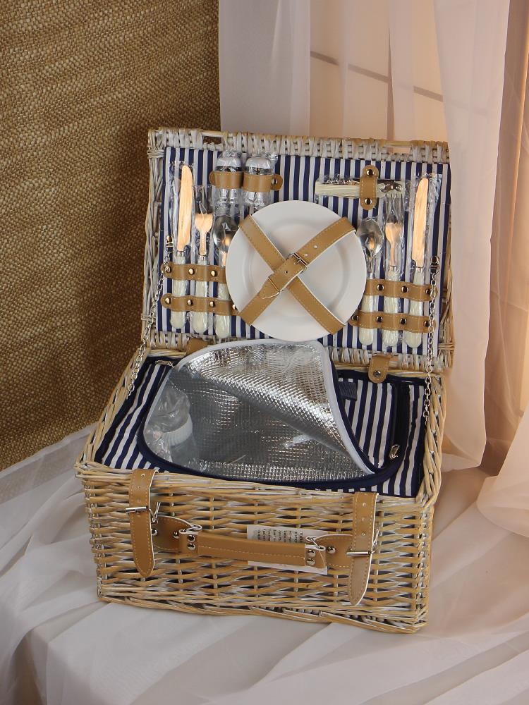 | Комплектация | - две тарелки по 18 см; - два бокала на 220 мл; - два набора столовых приборов из нержавеющей стали; - два ножа; - две вилки; - две ложки; - штопор из нержавеющей стали; - солонка; - перечница; - несъёмная термосумка. |