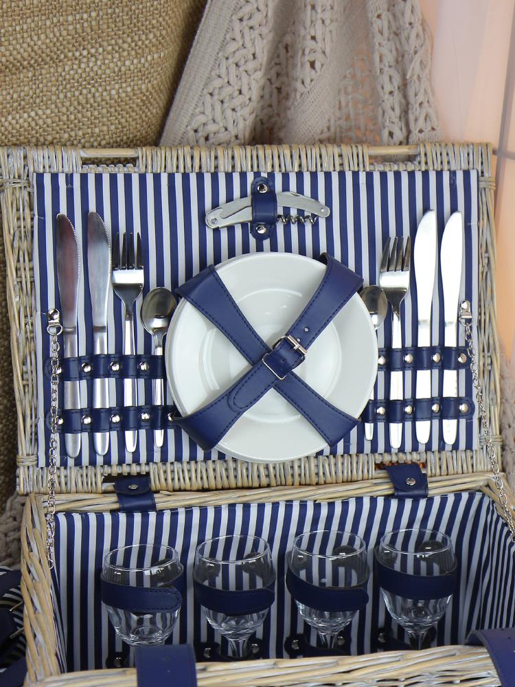 | Комплектация | - четыре тарелки по 18 см; - четыре бокала на 200 мл; - четыре набора столовых приборов из нержавеющей стали: - четыре ножа; - четыре вилки; - четыре ложки; - штопор (3 в 1) из нержавеющей стали; - отдельная термосумка; - плед 145 х 145 см; - текстильный наплечный ремень. |