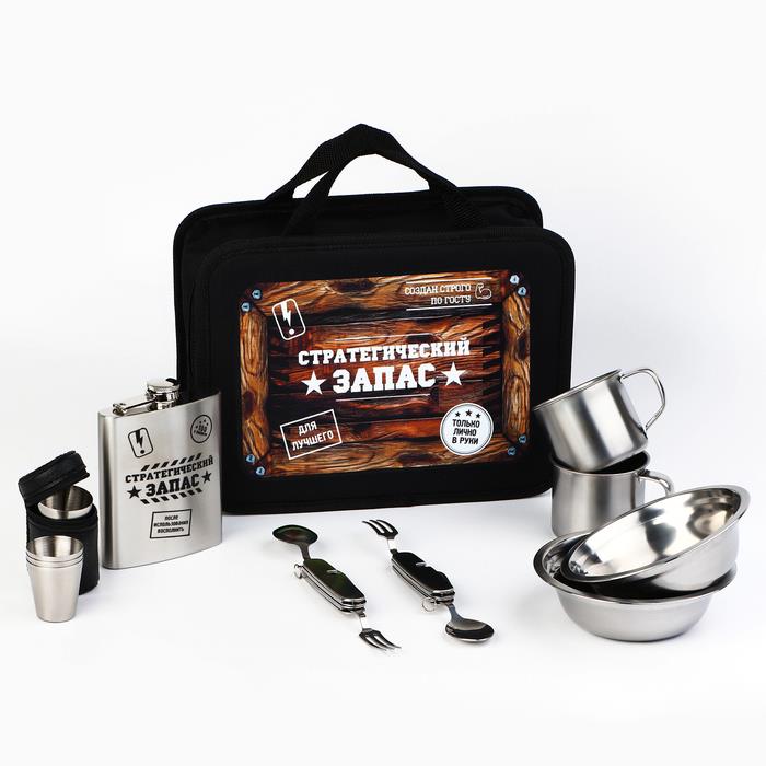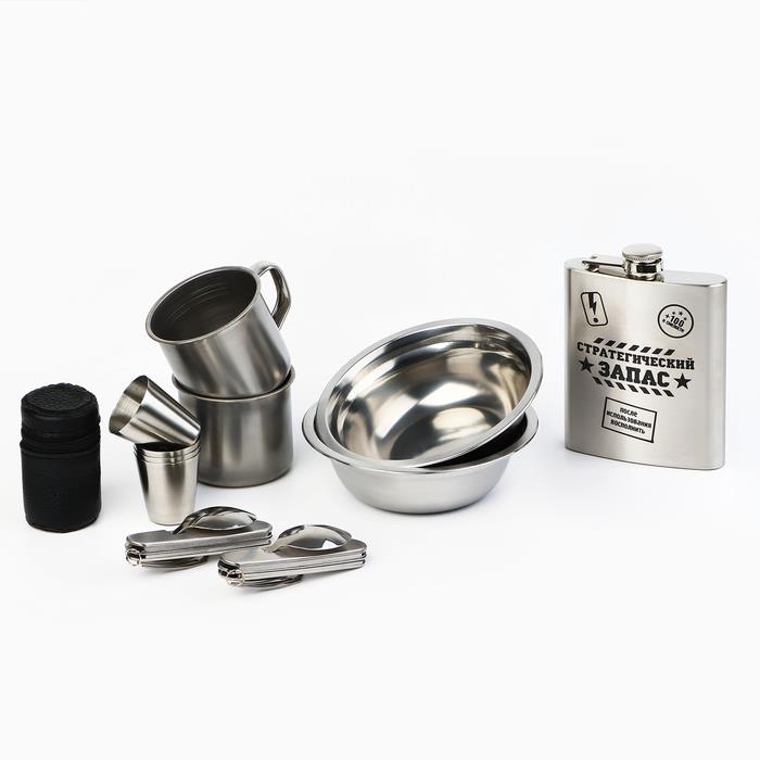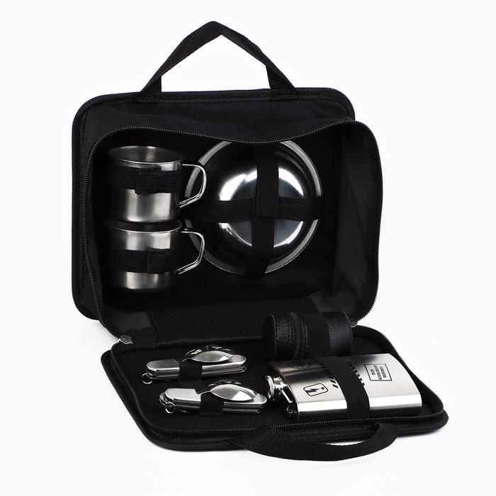 | Комплектация | - две тарелки объёмом 300 мл; - две кружки объёмом 150 мл; - четыре рюмки объёмом 25 мл; - фляжка объёмом 175 мл; - два мультитула. |