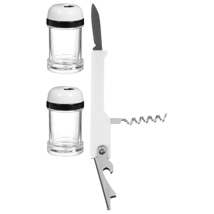 | Комплектация | - две тарелки по 15 см.; - два стакана на 350 мл.; - две ложки; - две вилки; - два ножа; - две солонки; - штопор. |