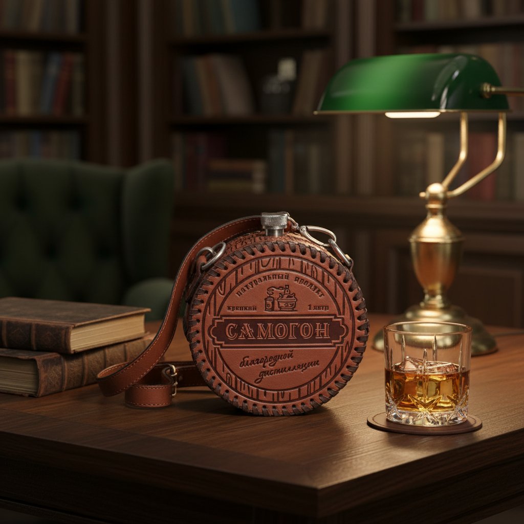 Фляга круглая «Крепкий самогон» (натуральная кожа)