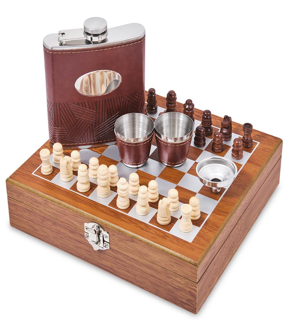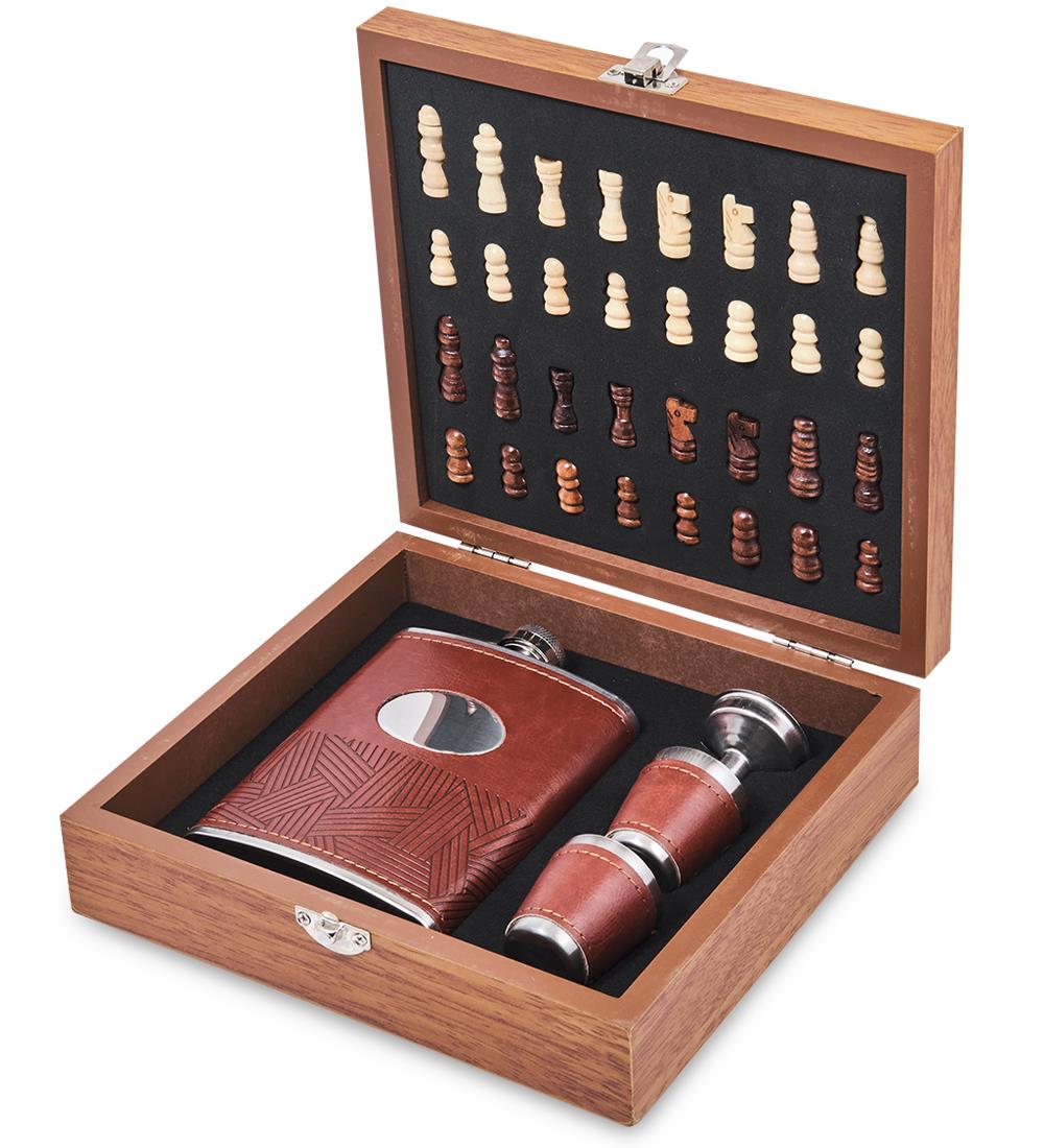 | Комплектация | - фляга из нержавеющей стали; - две стопки из нержавеющей стали; - шахматы деревянные. - воронка. |