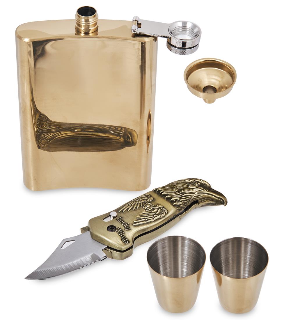 | Комплектация | - фляга из нержавеющей стали; - две стопки из нержавеющей стали; - воронка; - складной нож. |