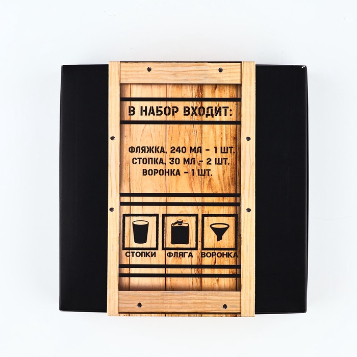| Комплектация | - фляга из нержавеющей стали; - две стопки из нержавеющей стали; - воронка. |