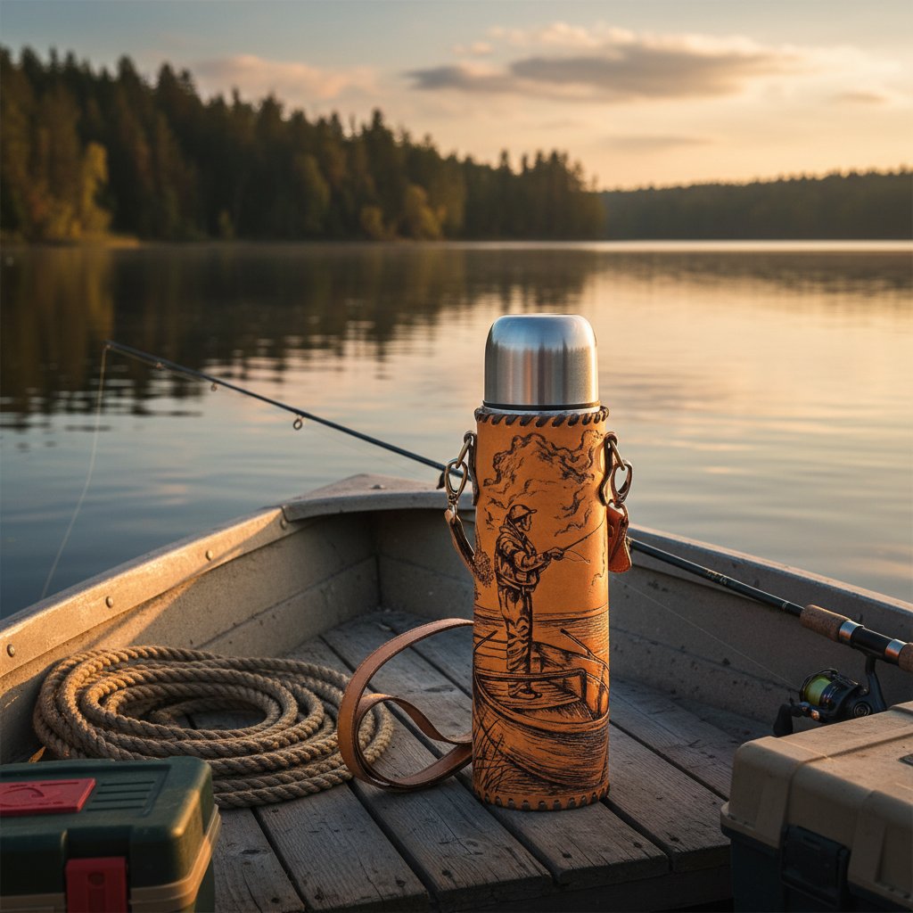 Размер: 33 х 9,5 х 9,5 см. Объем: 1 л. Материал: нержавеющая сталь, кожаный чехол