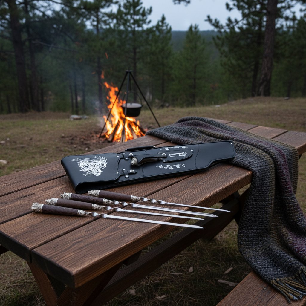 Эффектные и удобные шампуры придутся как нельзя более кстати на пикнике, охотничьем привале или дачном уик-энде в кругу единомышленников, друзей или родных. Впечатляющий комплект для приготовления аппетитного жареного мяса можно подарить супругу, деду, отцу, брату, другу, начальнику, бизнес-партнеру в день именин, юбилея, 23-е февраля, в ознаменование удачно завершившейся сделки или заключенного выгодного договора.