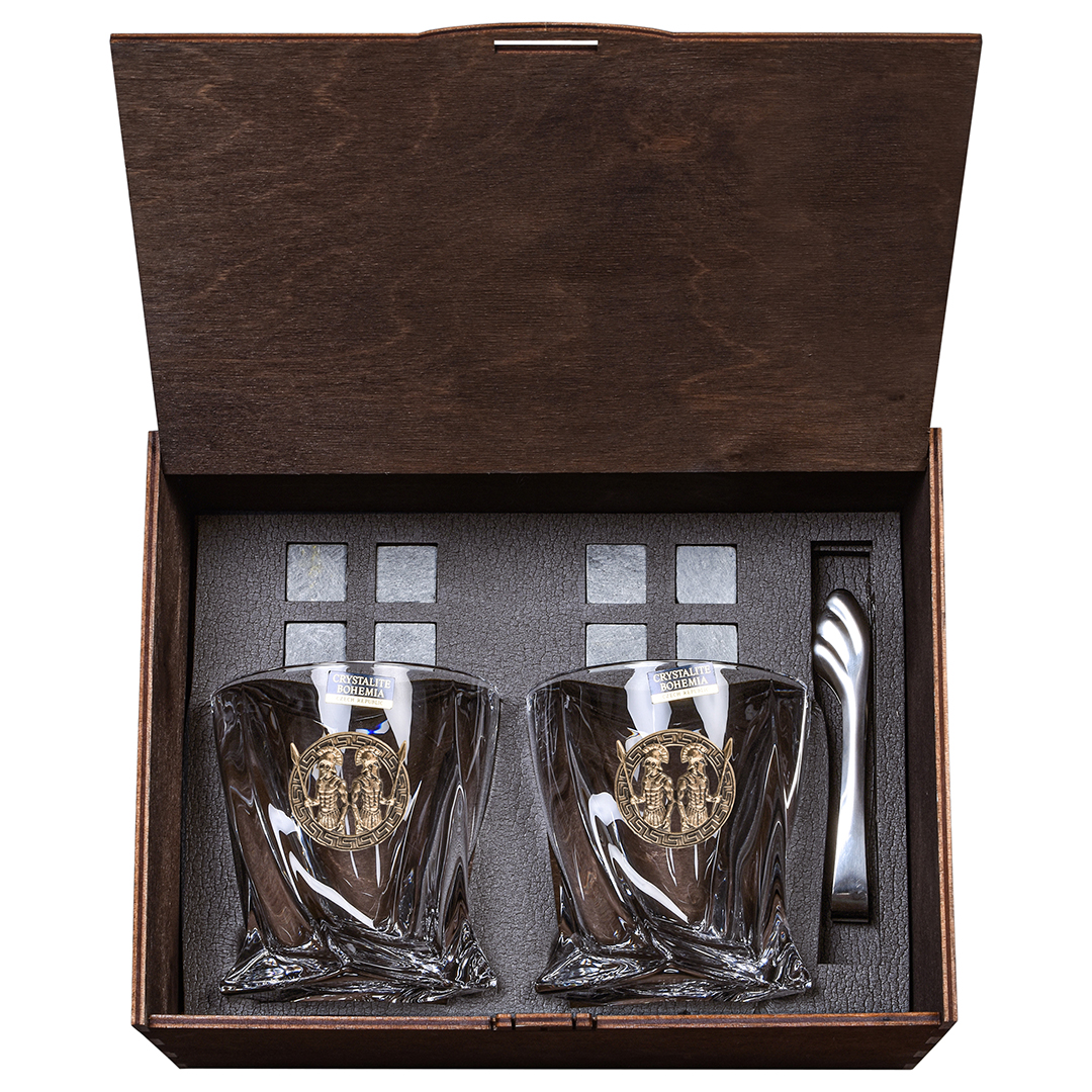 | Комплектация | - два бокала для виски; - восемь камней для виски; - два мешочка под камни для виски; - две подставки под бокалы; - щипцы. |