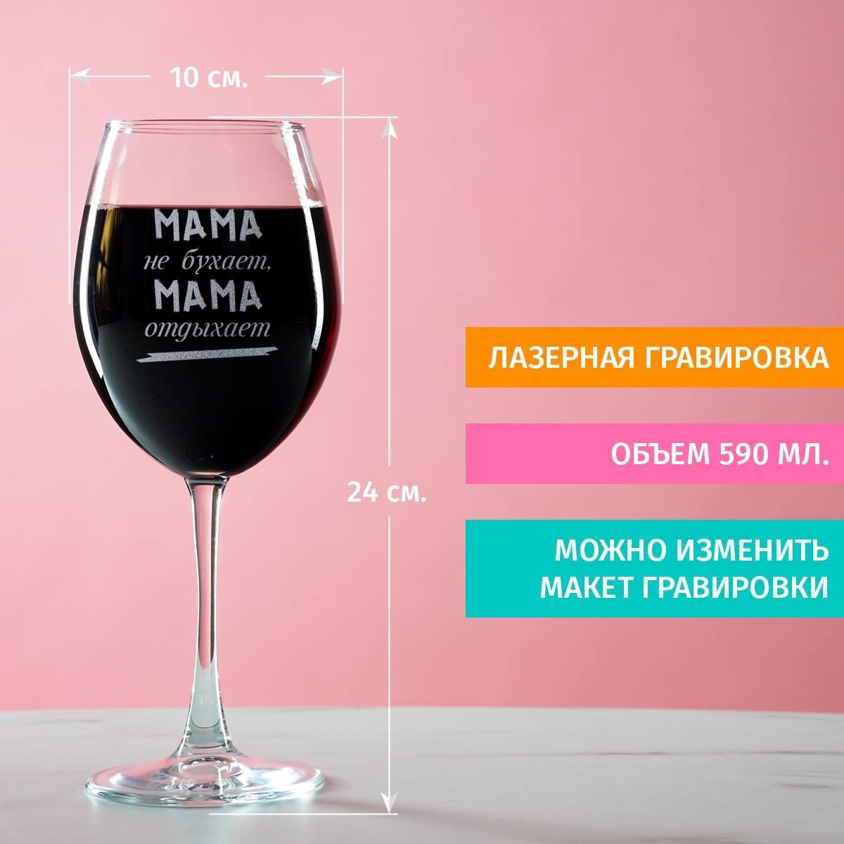 Уверены, что сомнений в покупке у вас больше не осталось. Ведь винные бокалы с надписью – безошибочный выбор подарка для ценителя ароматного напитка. Такой презент – это не только про пользу и эстетику, но и про индивидуальность: приятно обладать вещью, которую кто-то с любовью создавал именно для тебя!