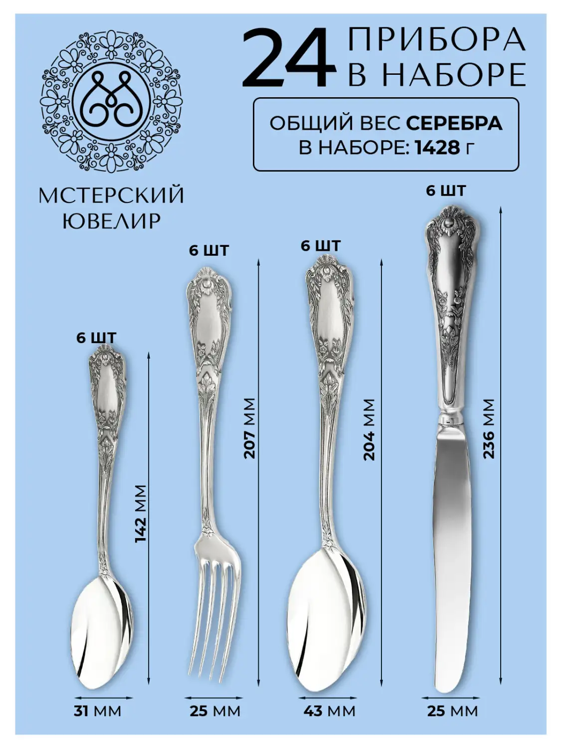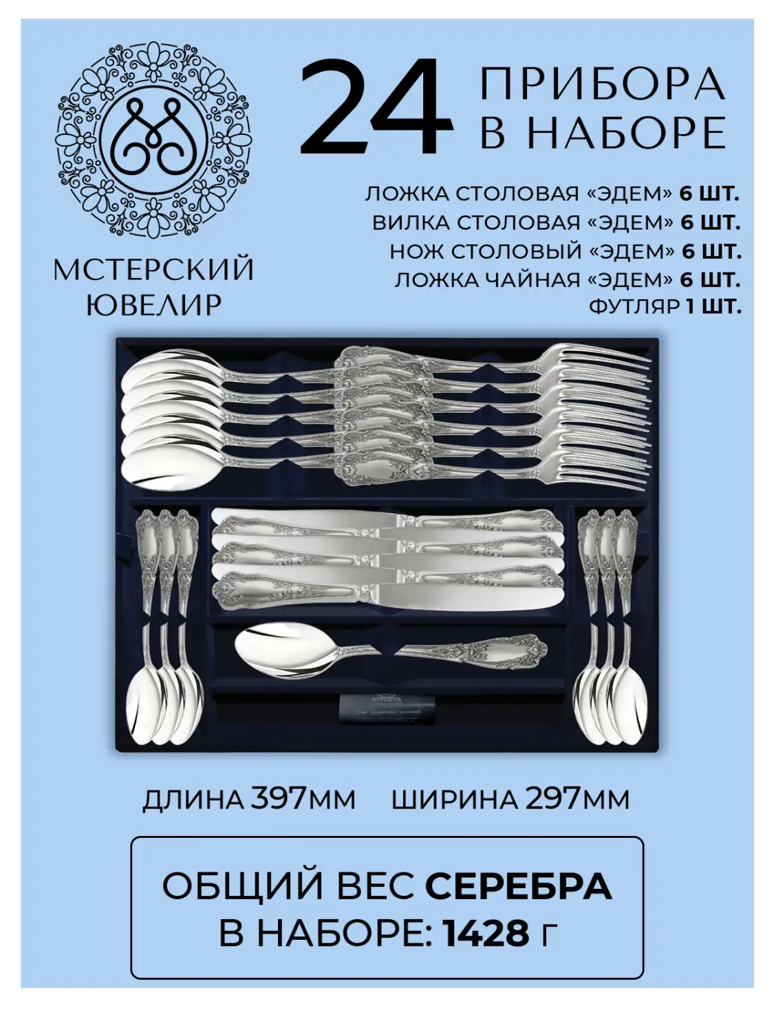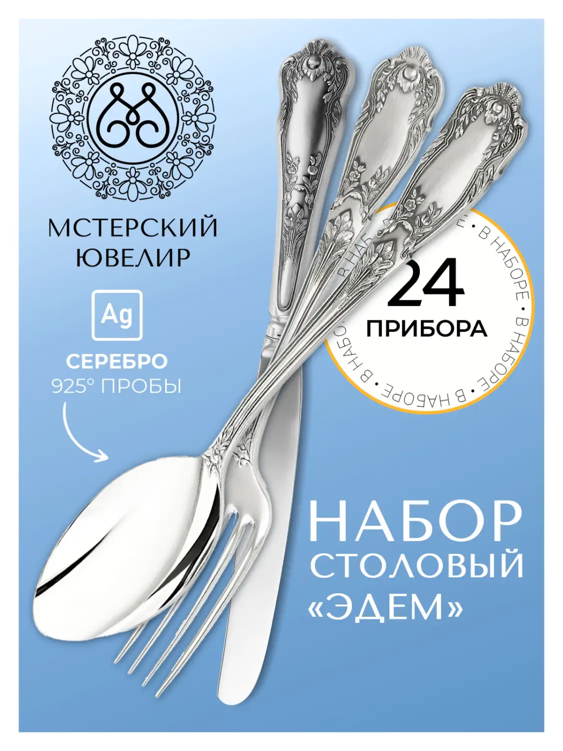 Набор столовых предметов «Эдем» (посеребрённый)