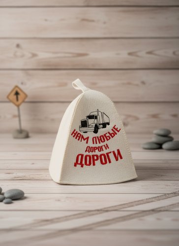 Кроме того, в комплект к данному изделию вы можете приобрести по вполне доступной цене шапочку для отдыха в бане, на поверхности которой вышита символичная надпись «Нам любые дороги дороги». Так одариваемый будет иметь полный комплект изделий для хорошего настроения и отдыха, который позволит оставаться мужчине у руля даже вне водительского сидения.