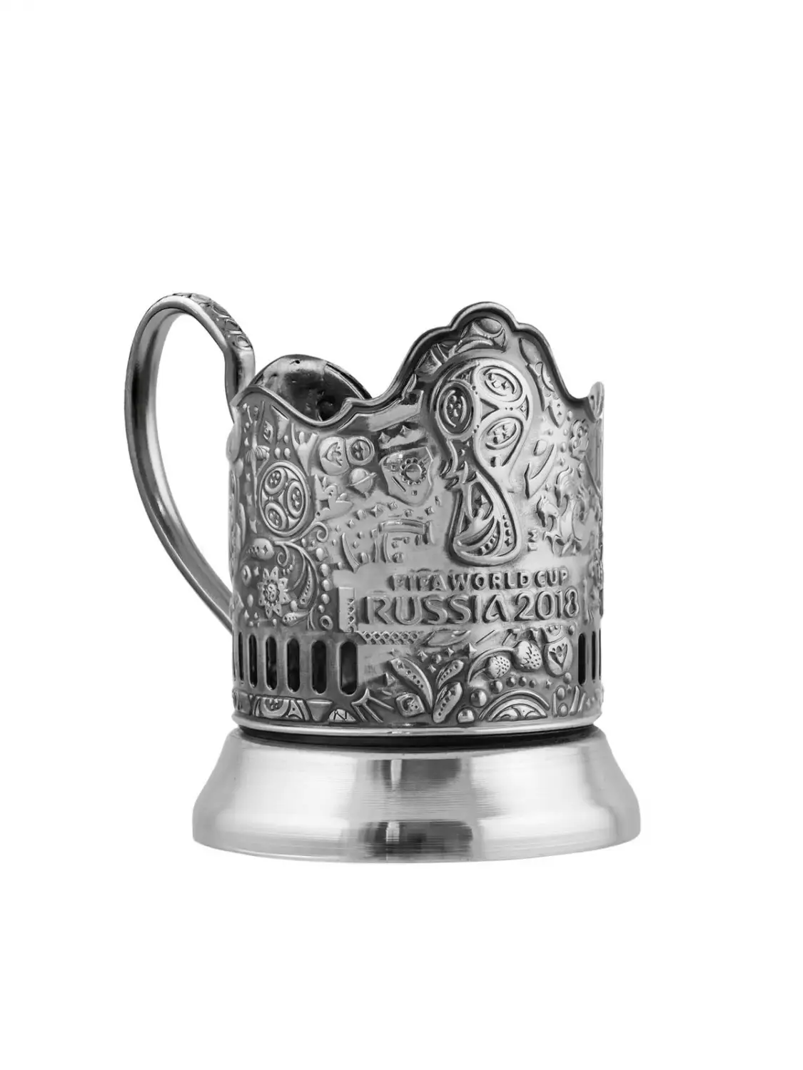 1. Подстаканник "FIFA" никелированный с чернением арт. С7408/91 - 1шт. (средний вес 1 х 170 гр. = 170 гр.) Длина: 72 мм. Ширина: 72 мм. Высота: 95 мм. Диаметр: 72 мм.