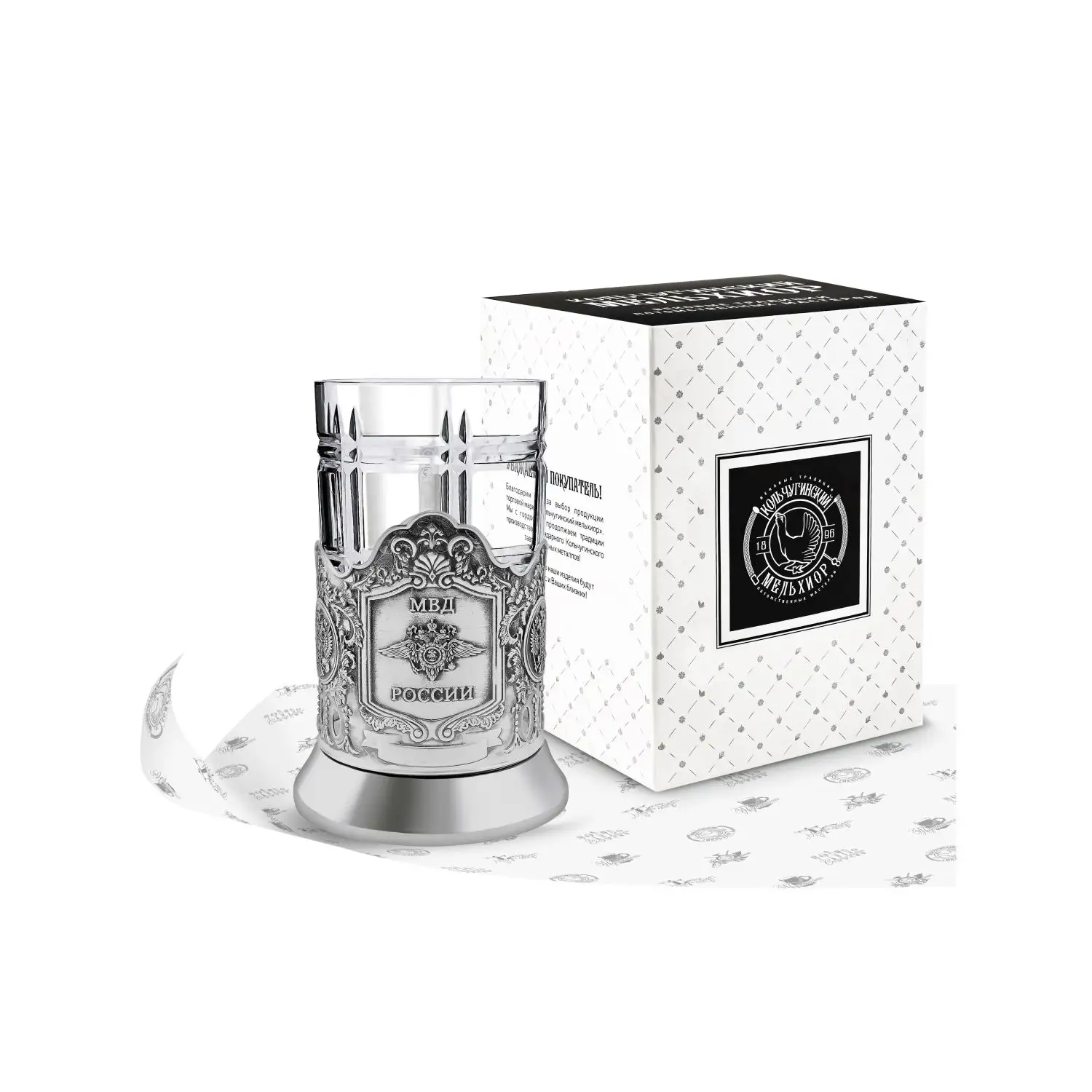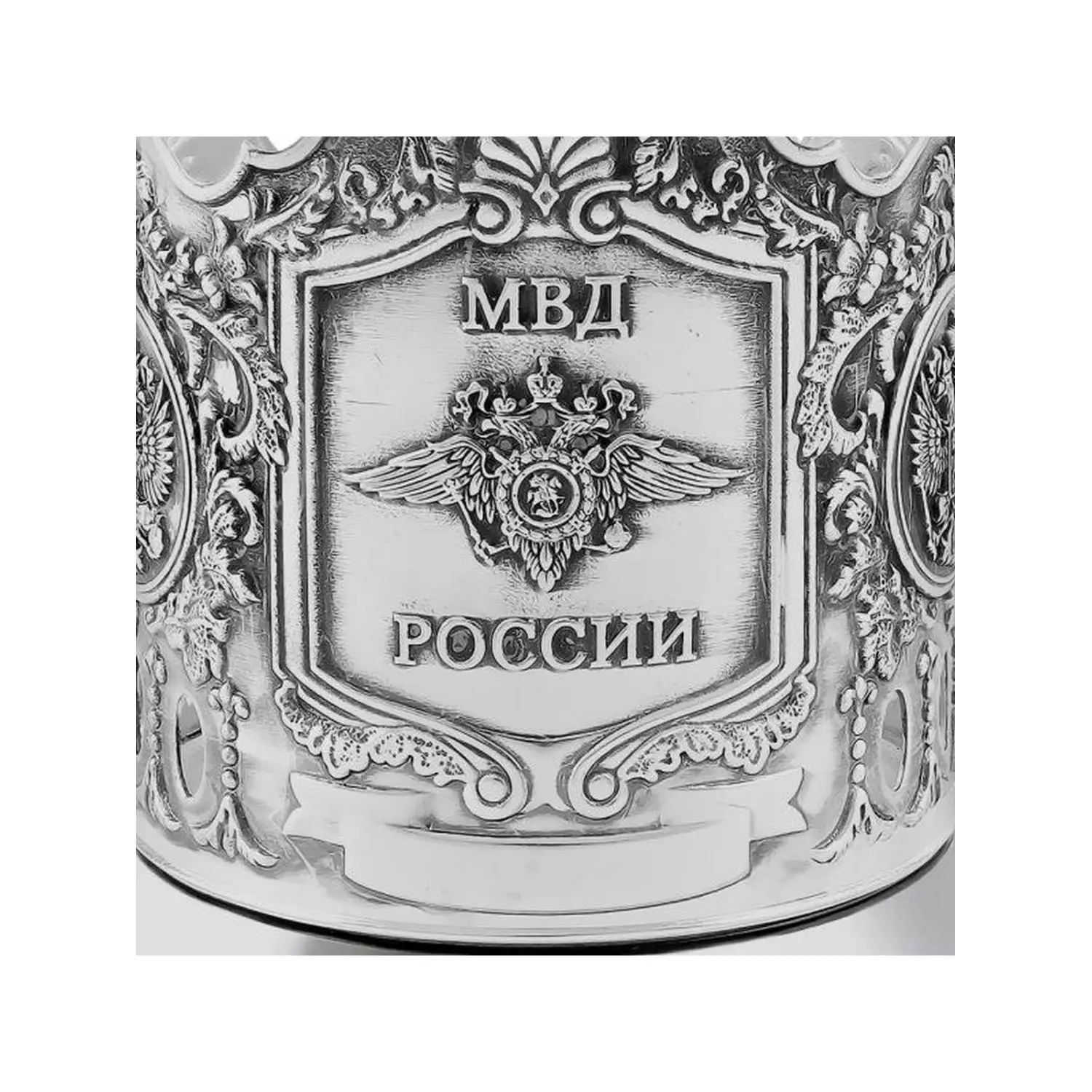1. Подстаканник посеребренный "МВД" арт. С36521/28 - 1шт. (средний вес 1 х 170 гр. = 170 гр.) Длина: 72 мм. Ширина: 72 мм. Высота: 95 мм. Диаметр: 72 мм.