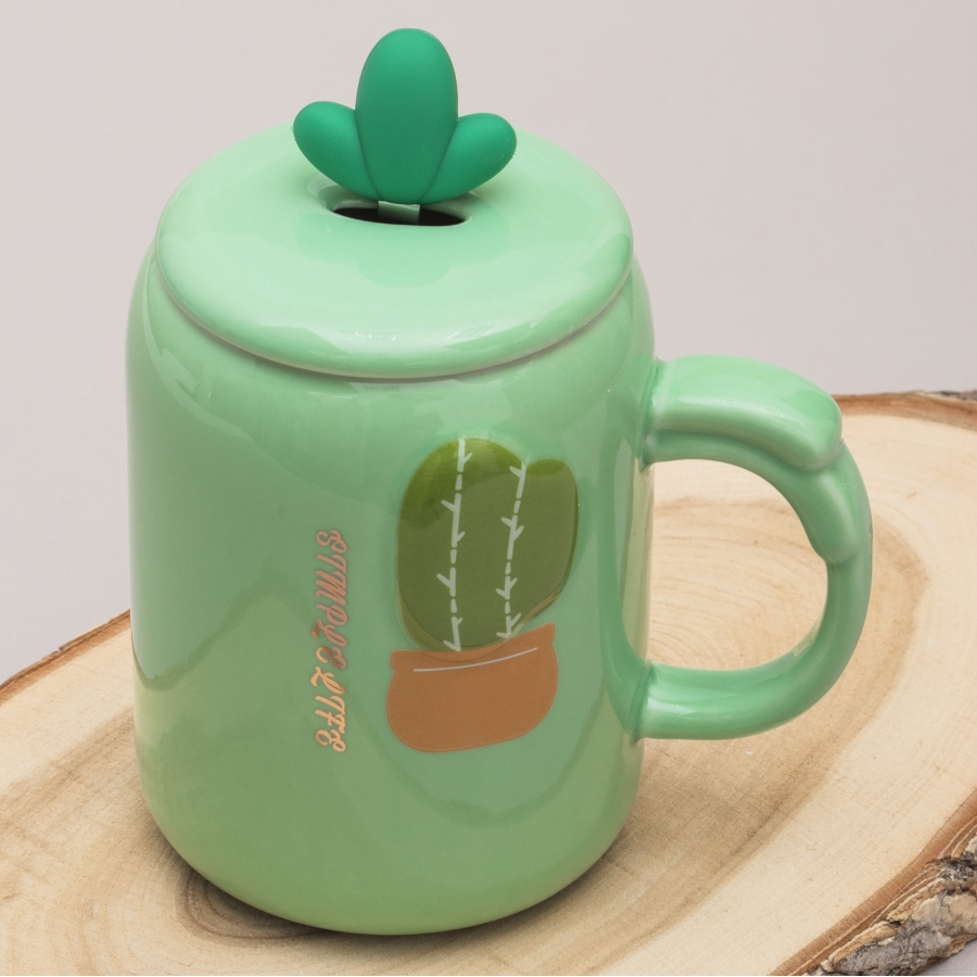 Кружка с крышкой «Зелёный кактус»