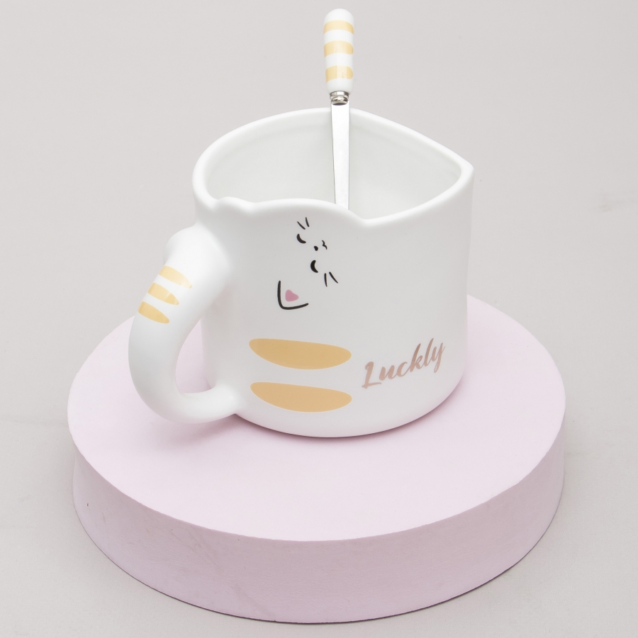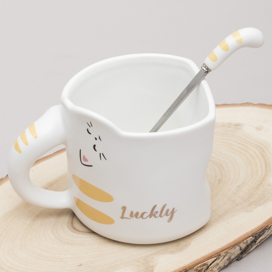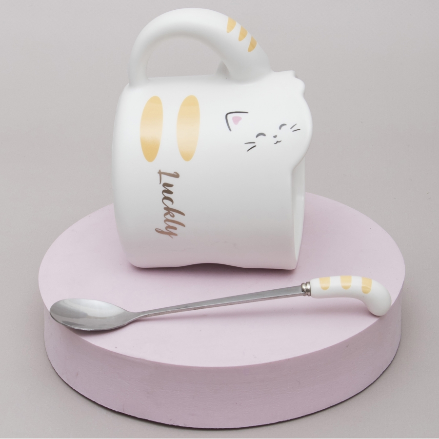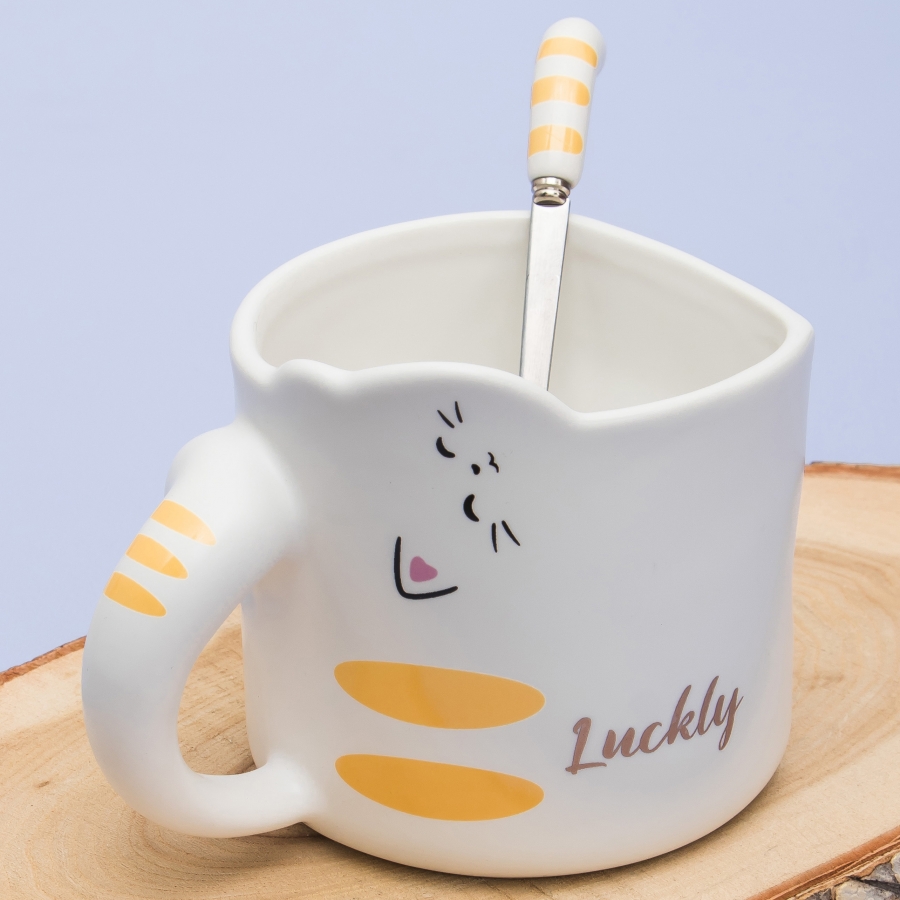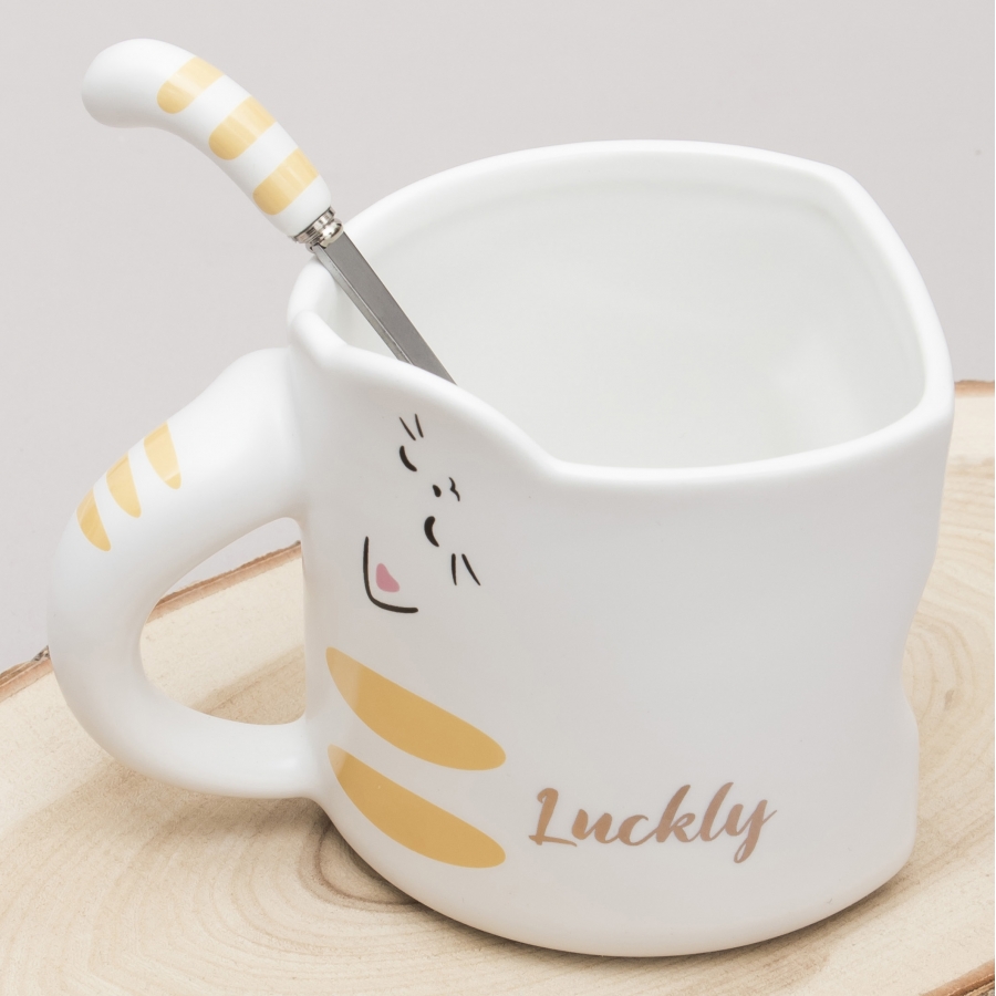 Кружка с ложечкой Кот - везунчик