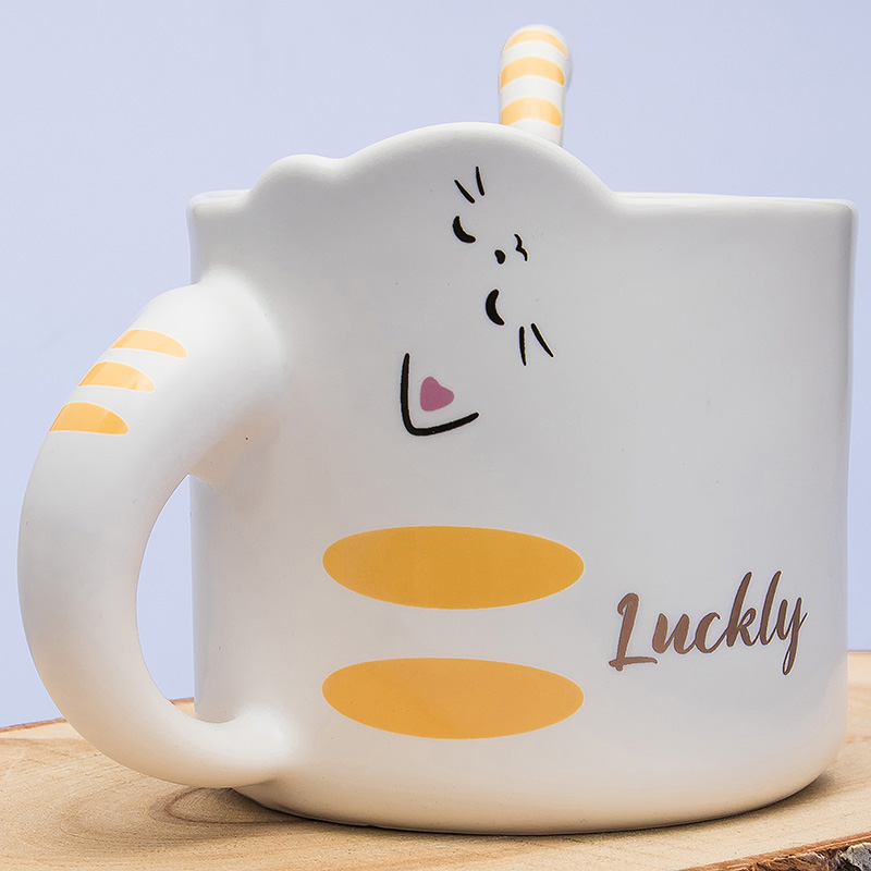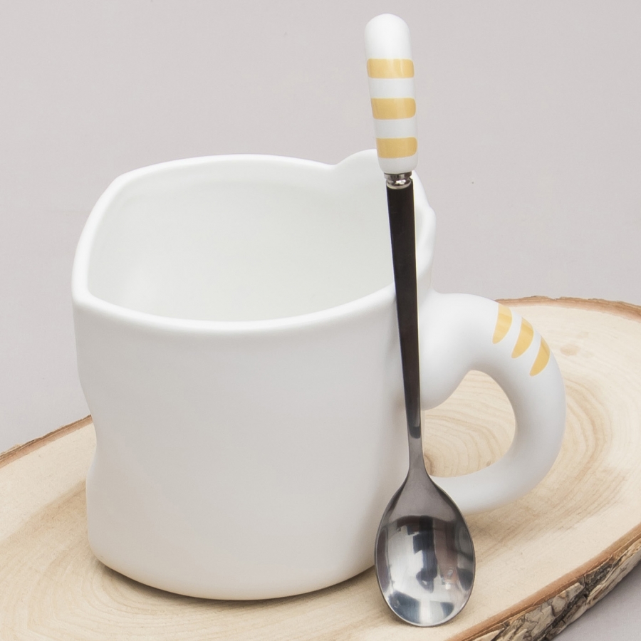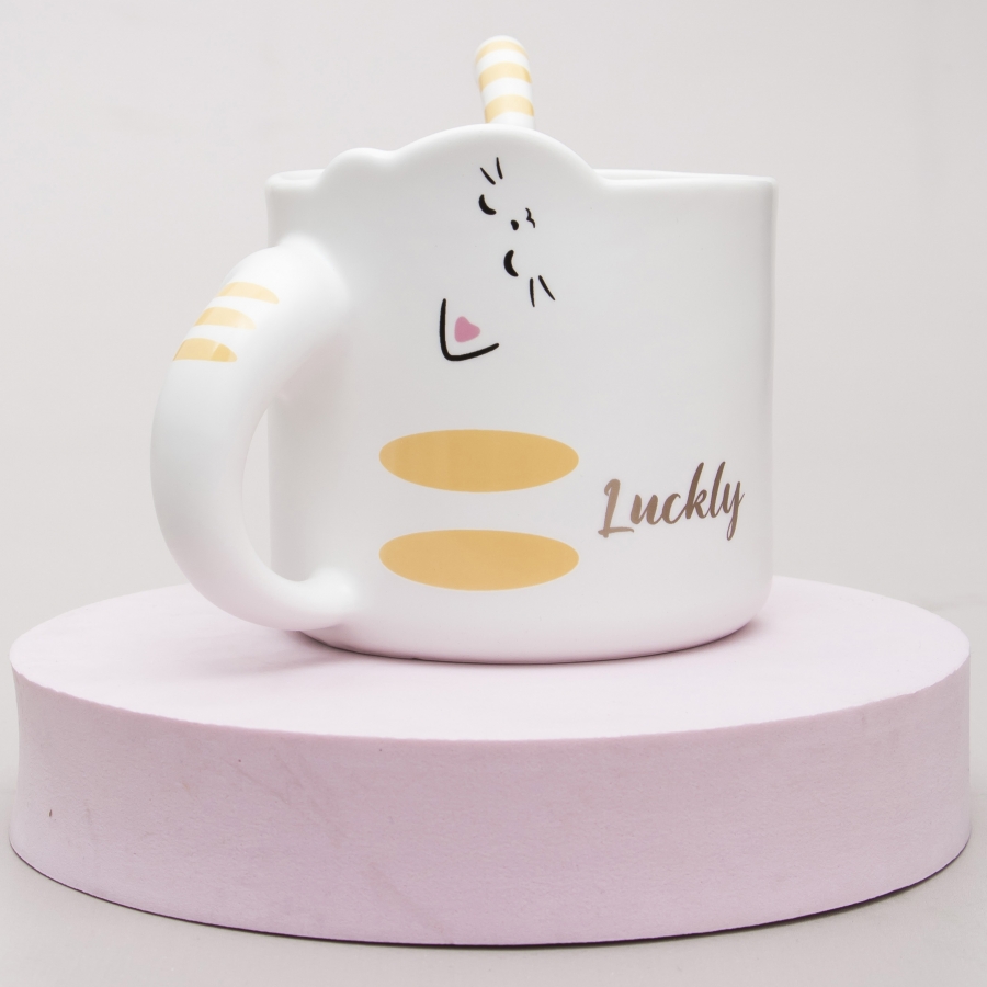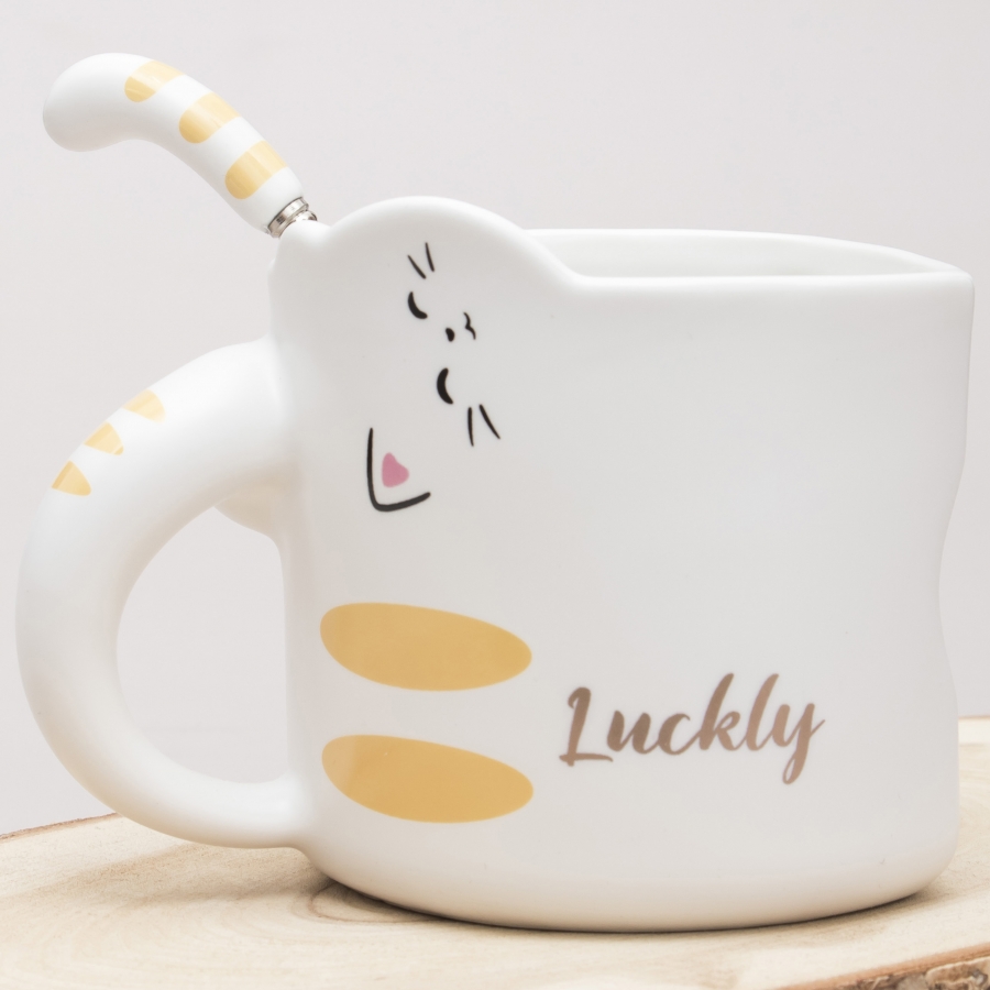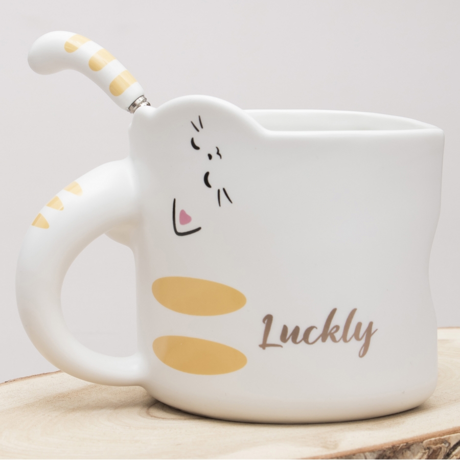 Кружка с ложечкой Кот - везунчик
