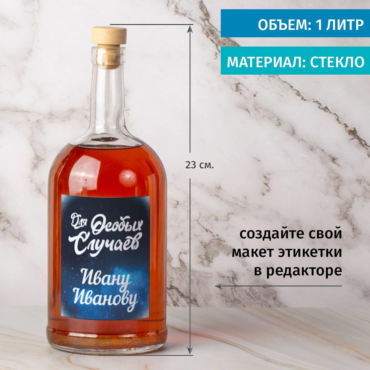 бутылка оригинальной формы объемом семьсот миллилитров с плотно закрывающей ее от выдыхания содержимого удобной пробкой;