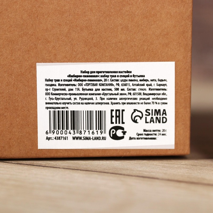 Набор для приготовления настойки «Имбирно-лимонная» (с бутылкой)