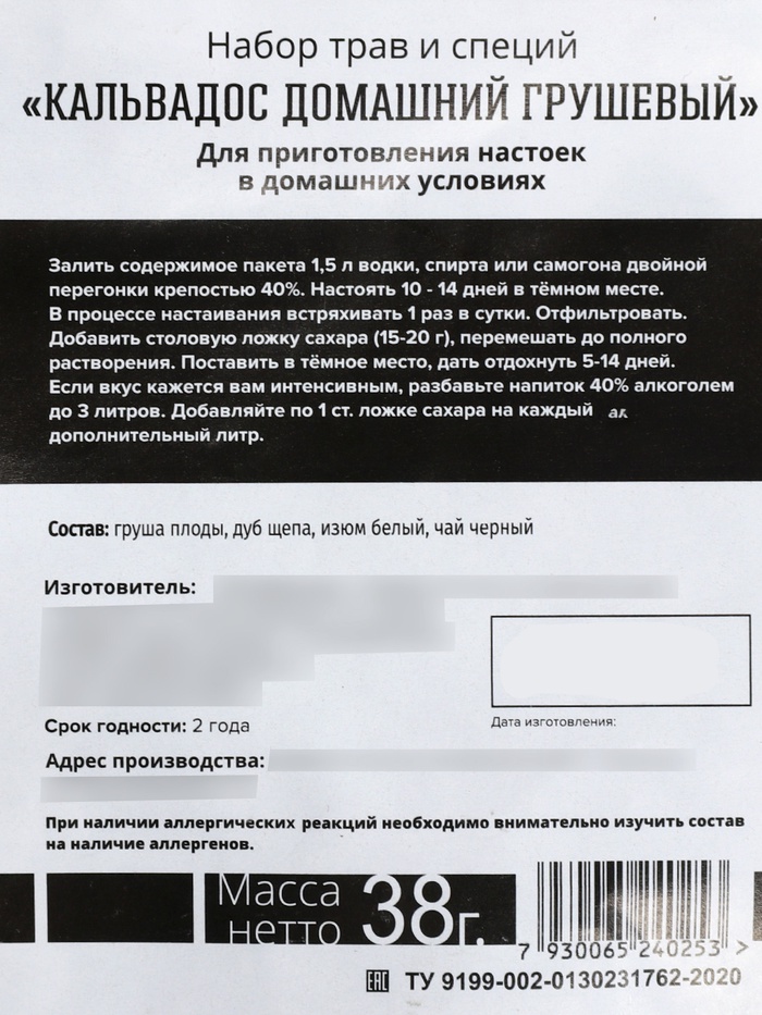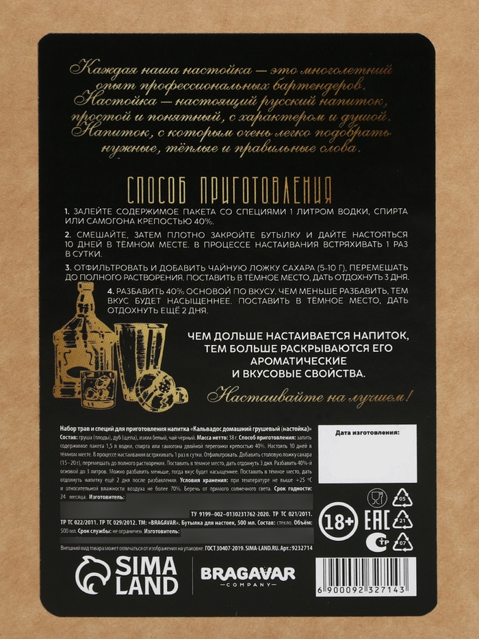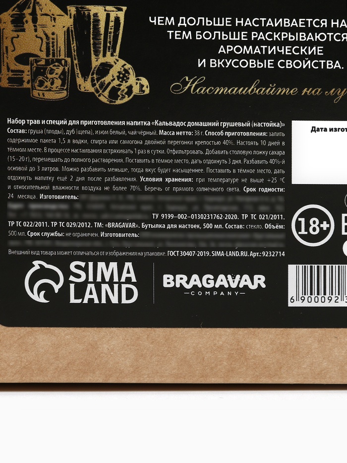 Набор для приготовления настойки «Кальвадос грушевый» (со штофом)