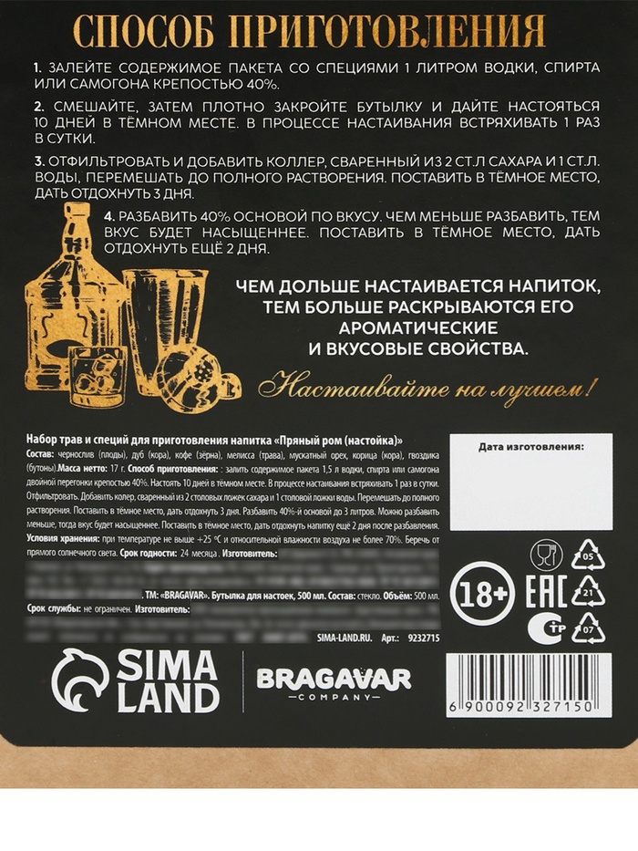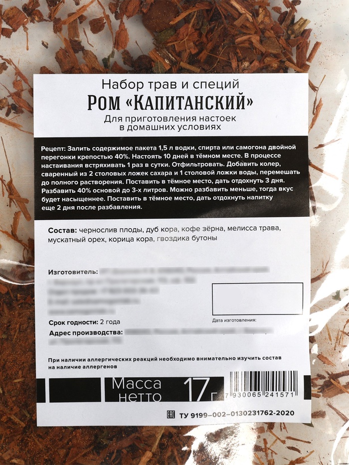 Набор для приготовления настойки «Капитанский ром» (со штофом)