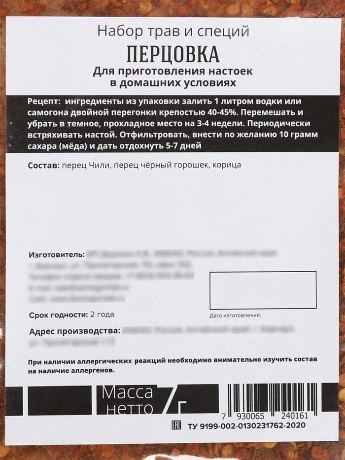 Набор для приготовления настойки «Перцовка» (со штофом)