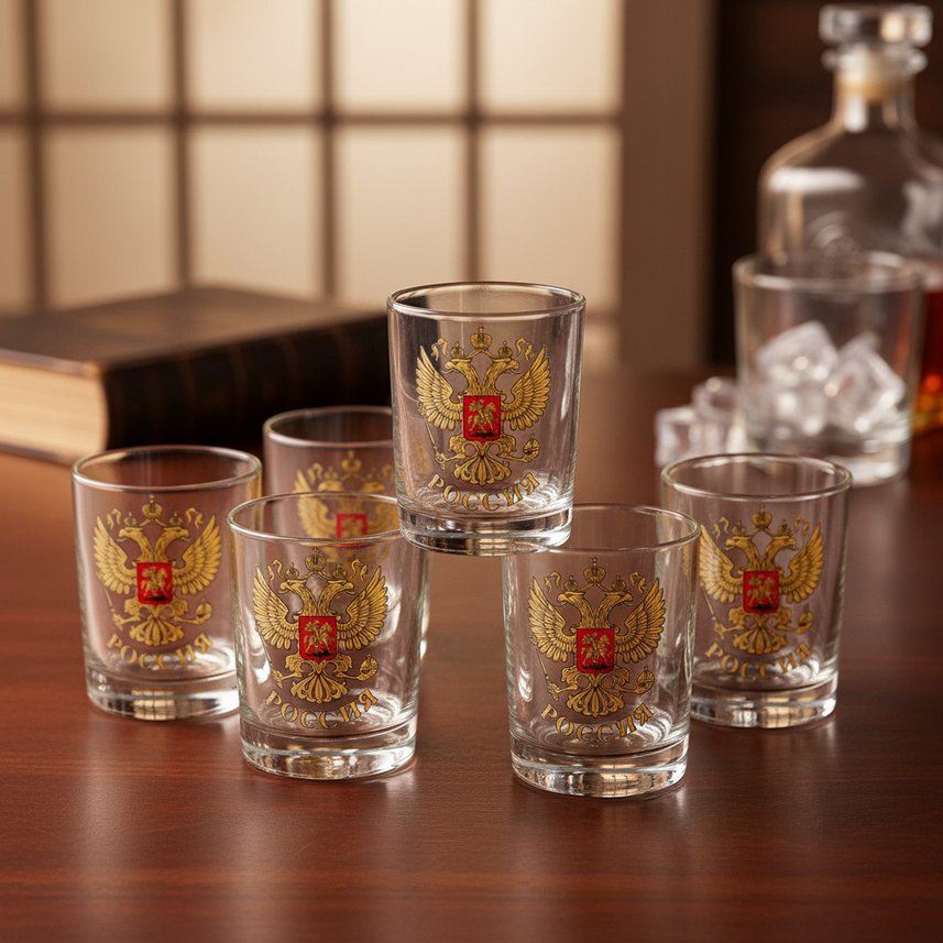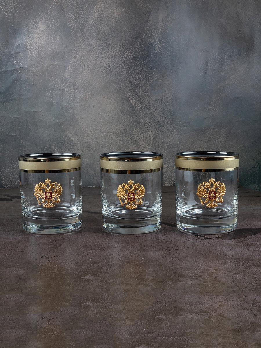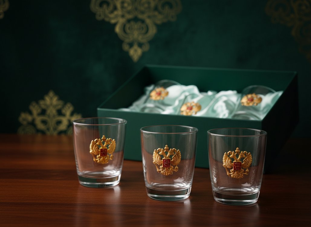 Для тех, чей бюджет относительно невелик, и для тех, кто большую его часть уже истратил на покупку коллекционного напитка, мы рекомендуем приобрести «тройки» - наборы из трёх бокалов для виски, украшенных цветными накладками. Изготовлены эти симпатичные изделия в Ивановской области из высококачественного стекла по форме знаменитого стакана олд-фешен. Главной их особенностью помимо доступной стоимости является символичная накладка, отлитая из алюминиевого сплава. Чтобы барельеф напоминал по виду драгоценный золотой металл, хитрые мастера применили технологию полировки и специальной гальванической отделки. А для закрепления результата и придания более эстетичного вида символичные накладки дополнительно покрыты ювелирной эмалью и закреплены на поверхности сосудов. И пусть золота в таких наборах нет ни грамма, а сами изделия стоят сущие копейки, кроме вас на торжестве об этом вряд ли кто-то будет знать…
