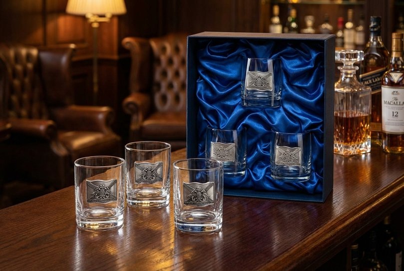 Может быть, именно поэтому с каждым годом всё сильнее растёт спрос как на одиночные бокалы, так и на целые подарочные наборы для виски, где интернет-магазин «Подарки от Михалыча» издавна считается признанным лидером. Ведь в нашем ассортименте можно встретить варианты на любой вкус и кошелёк: бюджетные «тройки» с возможностью персональной гравировки, оригинальные виски-сеты с ведёрком для льда, знатные «шестёрки» с антикварными барельефами, стилизованными под серебро, премиальные наборы с графином, роскошные хрустальные бокалы для виски и многое другое. Но обо всем по порядку.
