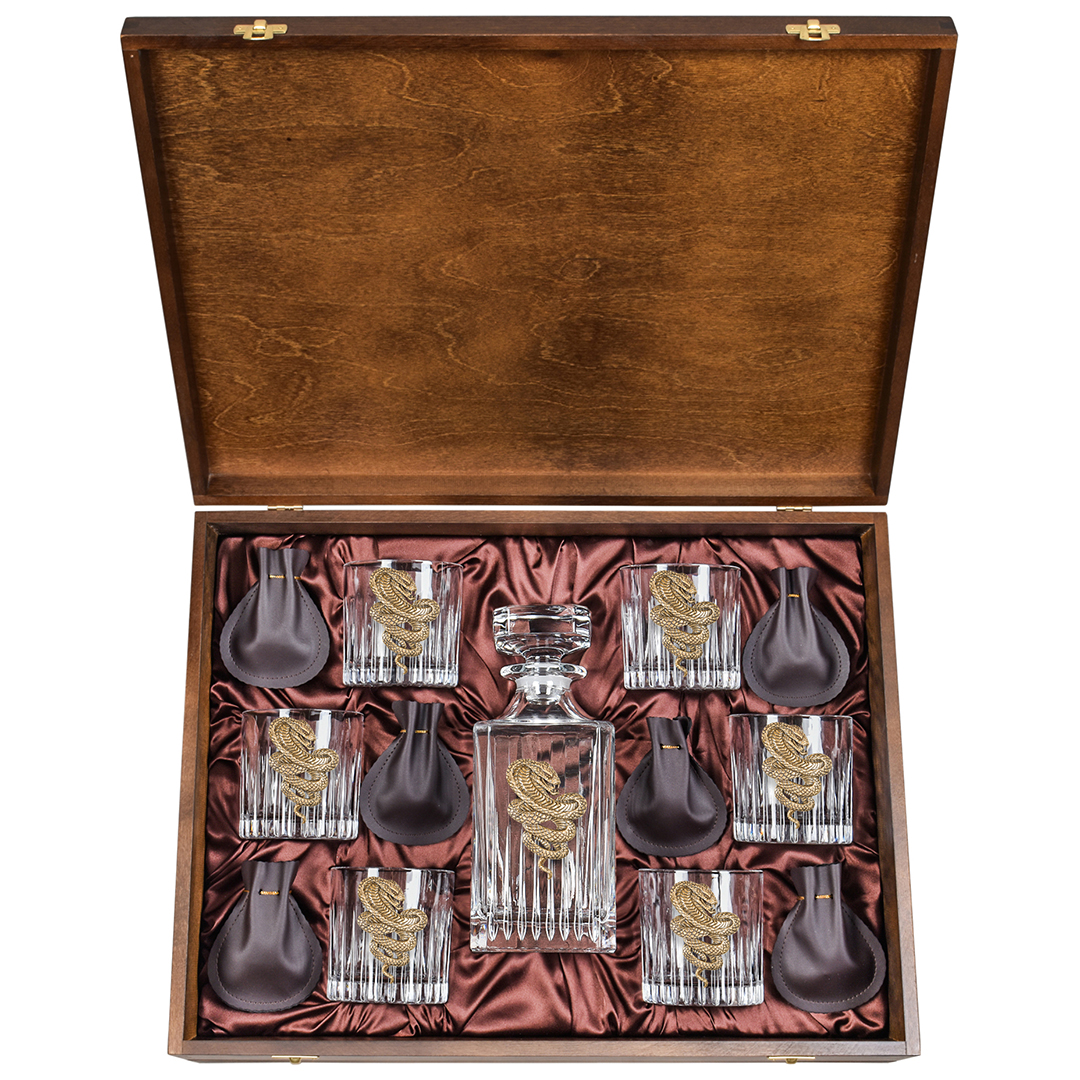 Объём штофа: 700 мл. Объём бокалов: 340 мл. Высота бокала: 10 см. Диаметр бокала: 9 см.