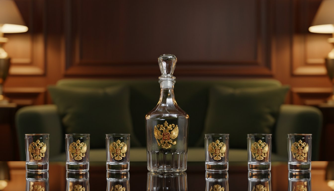 Солидность и богатство государственных кабинетов, пряный аромат натуральной кожи, витающий в воздухе, особая атмосфера, пропитанная значимостью утекающего времени – всё это атрибуты российских государственных деятелей на местах. И чтобы не сойти с ума от постоянного напряжения, дополнить такой интерьер можно набором для водки «Министерский». Он станет приятным поводом для редкого, но столь необходимого приёма внутрь горячительного и расслабляющего напитка.